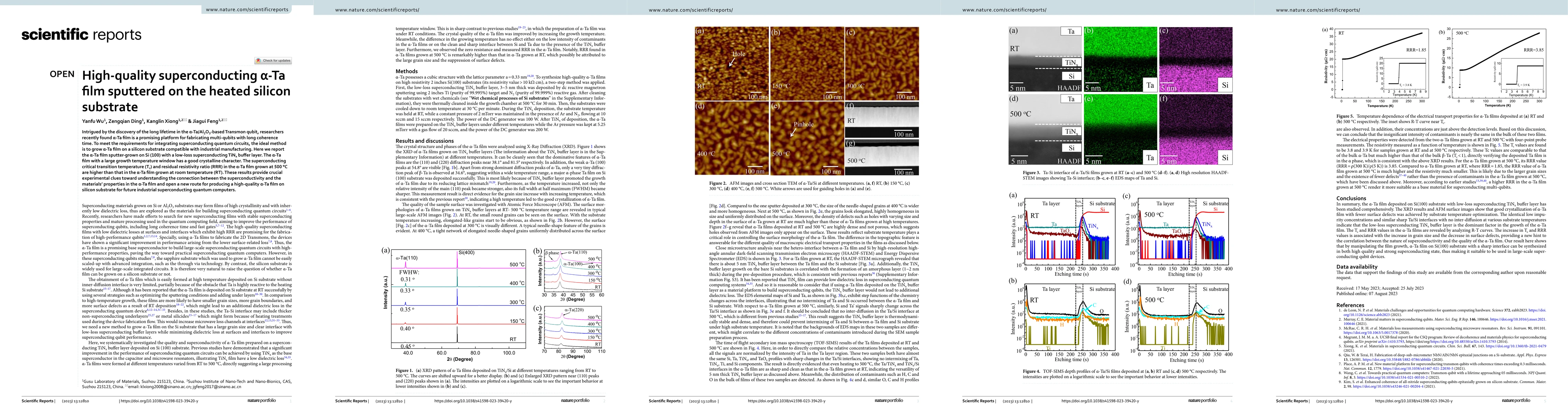 Intrigued by the discovery of the long lifetime in the {\alpha}-Ta/Al2O3-based Transmon qubit, researchers recently found {\alpha}-Ta film is a promising platform for fabricating multi-qubits with long coherence time. To meet the requirements for integrating superconducting quantum circuits, the ideal method is to grow {\alpha}-Ta film on a silicon substrate compatible with industrial manufacturing. Here we report the {\alpha}-Ta film sputter-grown on Si (100) with a low-loss superconducting TiNx buffer layer. The {\alpha}-Ta film with a large growth temperature window has a good crystalline character. The superconducting critical transition temperature (Tc) and residual resistivity ratio (RRR) in the {\alpha}-Ta film grown at 500 {\deg}C are higher than that in the {\alpha}-Ta film grown at room temperature (RT). These results provide crucial experimental clues toward understanding the connection between the superconductivity and the materials' properties in the {\alpha}-Ta film and open a new route for producing a high-quality {\alpha}-Ta film on silicon substrate for future industrial superconducting quantum computers.