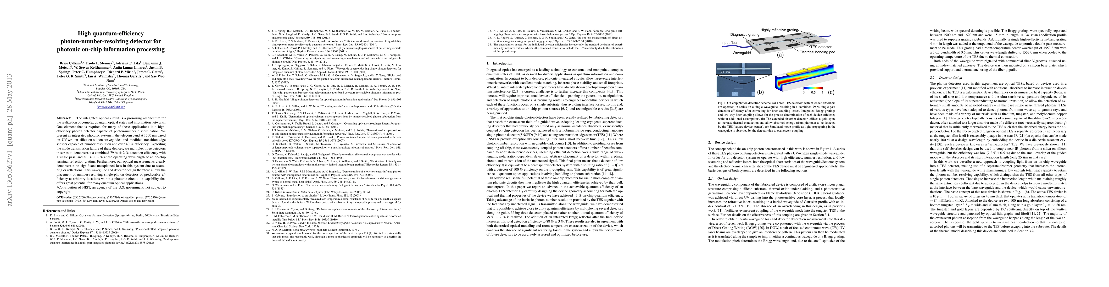 This paper presents a high-efficiency, photon-number-resolving detector integrated on a silica-on-silicon waveguide platform, achieving over 40% efficiency and a combined multiplexed detection efficiency of 79% to 88%. The system demonstrates minimal loss and holds promise for quantum optical applications.