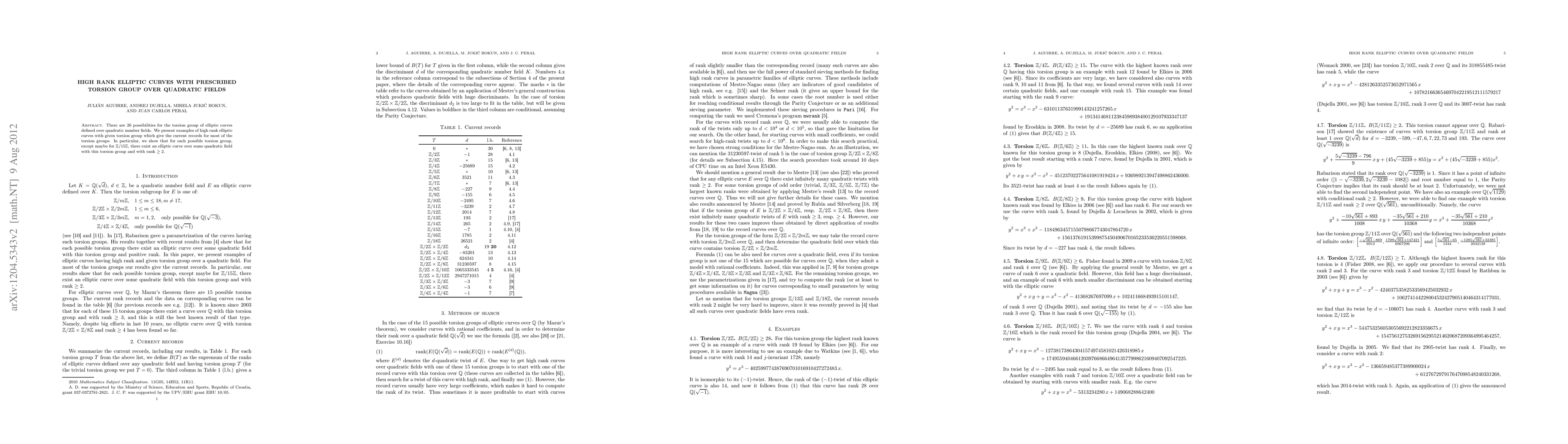 The research presents examples of high rank elliptic curves defined over quadratic fields, showing that for each torsion group possibility, except possibly Z/15Z, there exists a curve with rank ≥ 2. These examples set current records for most torsion groups.