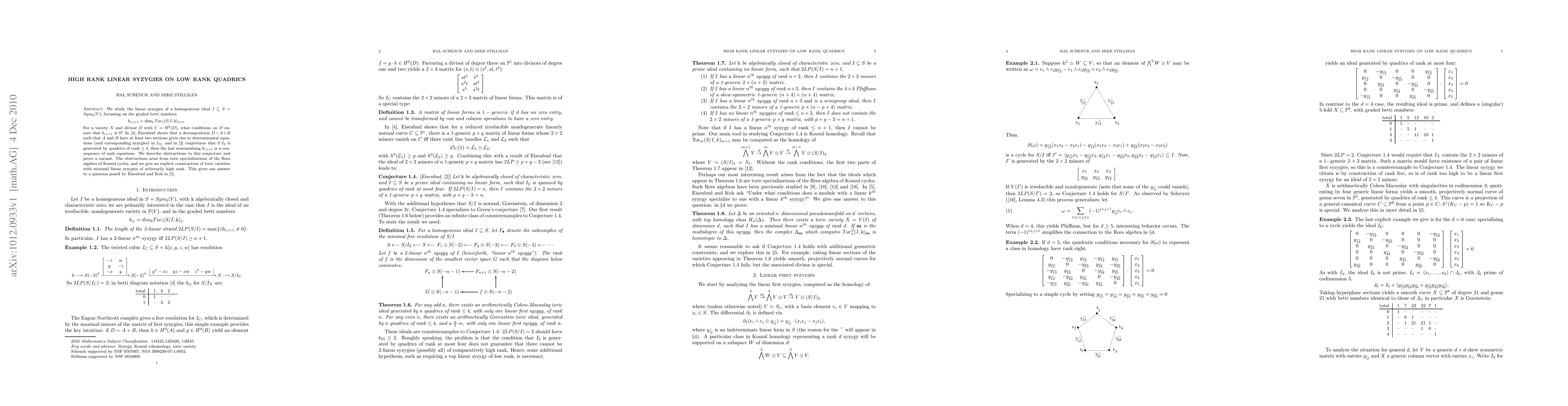 The work presents novel obstructions to Eisenbud's conjecture and provides explicit toric varieties with high-rank minimal linear syzygies, contributing unique insights to the field.