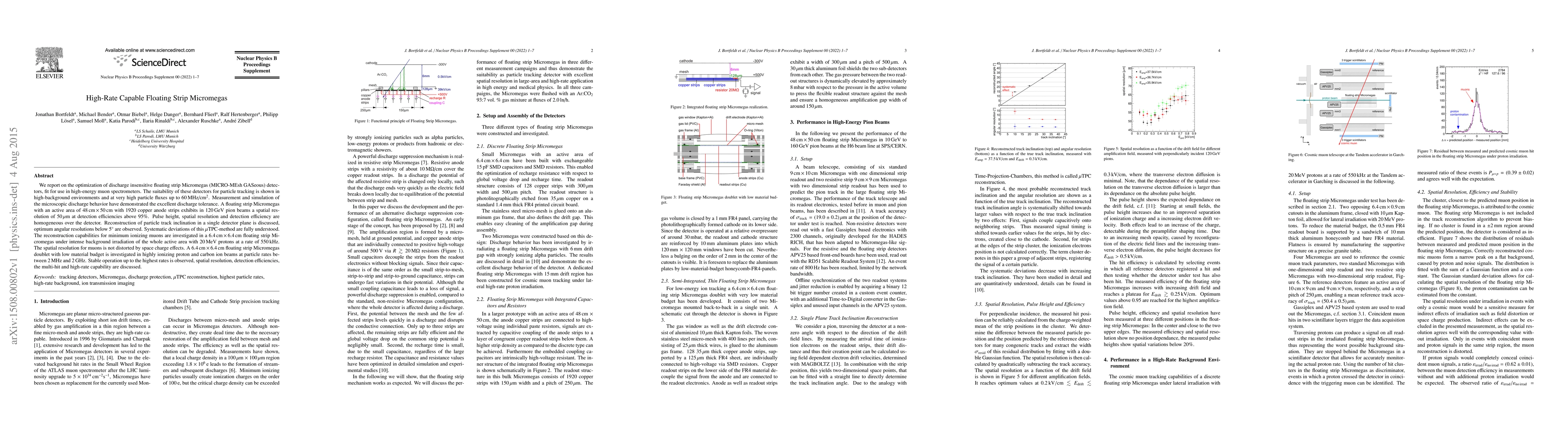 This paper optimizes floating strip Micromegas detectors for high-energy muon spectrometers, demonstrating their suitability for particle tracking at high fluxes and background levels, with spatial resolution of 50µm and detection efficiencies above 95%. The detectors show stable operation and excellent discharge tolerance even at rates up to 60MHz/cm², maintaining angular resolutions below 5°.