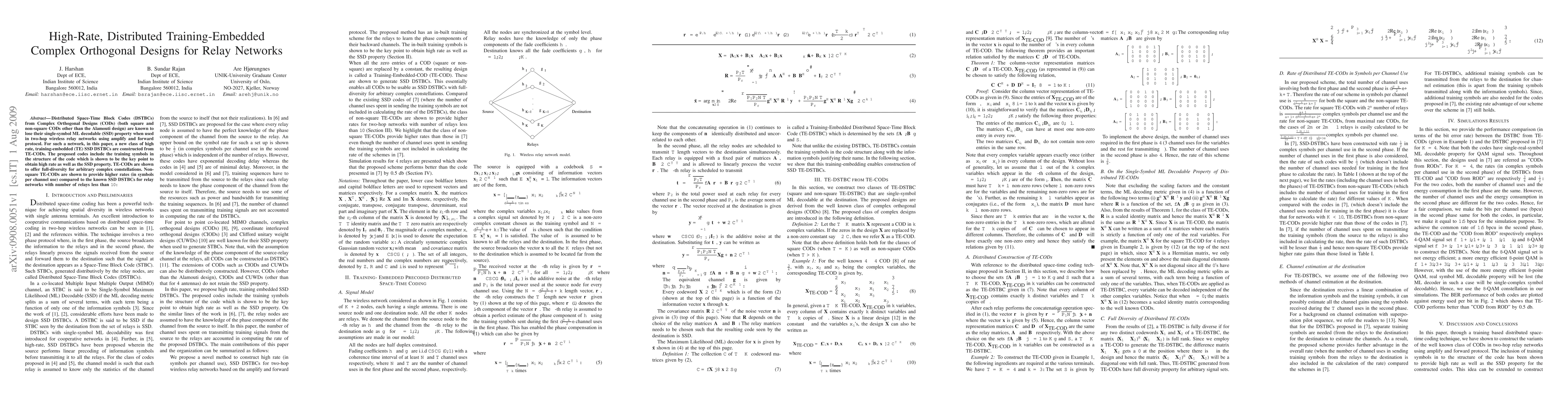 This paper proposes high-rate, training-embedded Distributed Space-Time Block Codes (DSTBCs) derived from Complex Orthogonal Designs (CODs) for two-hop relay networks. The embedded training symbols enable the codes to maintain single-symbol ML decodability and offer full-diversity for various complex constellations, with non-square designs achieving higher rates for networks with fewer than 10 relays.