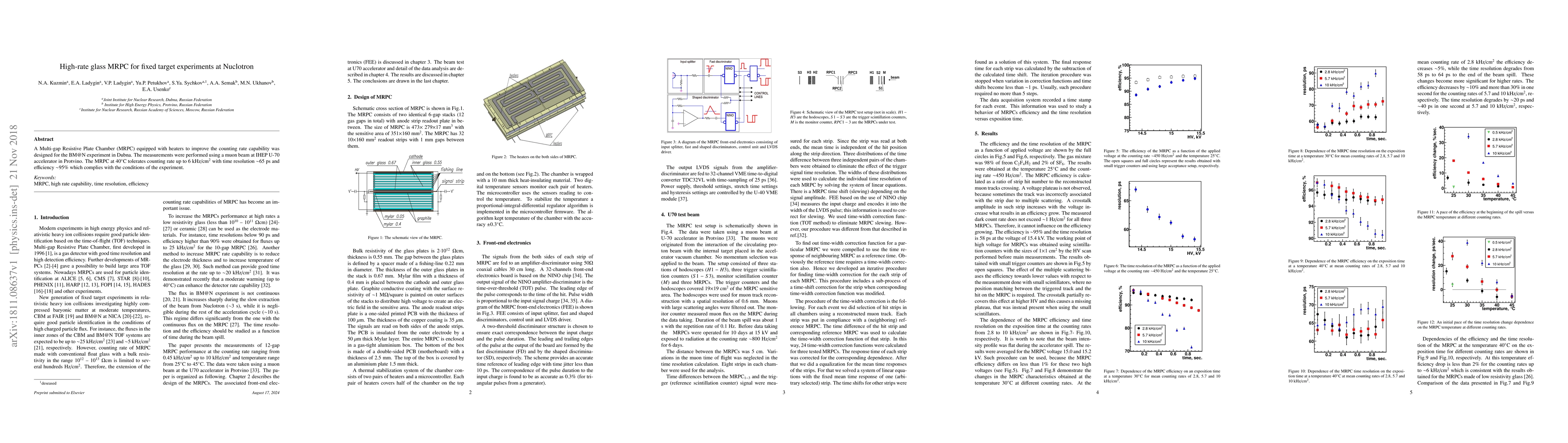 A high-rate glass MRPC was designed for a fixed target experiment at Nuclotron, achieving 6 kHz/cm^2 counting rate with ~65 ps time resolution and ~95% efficiency.