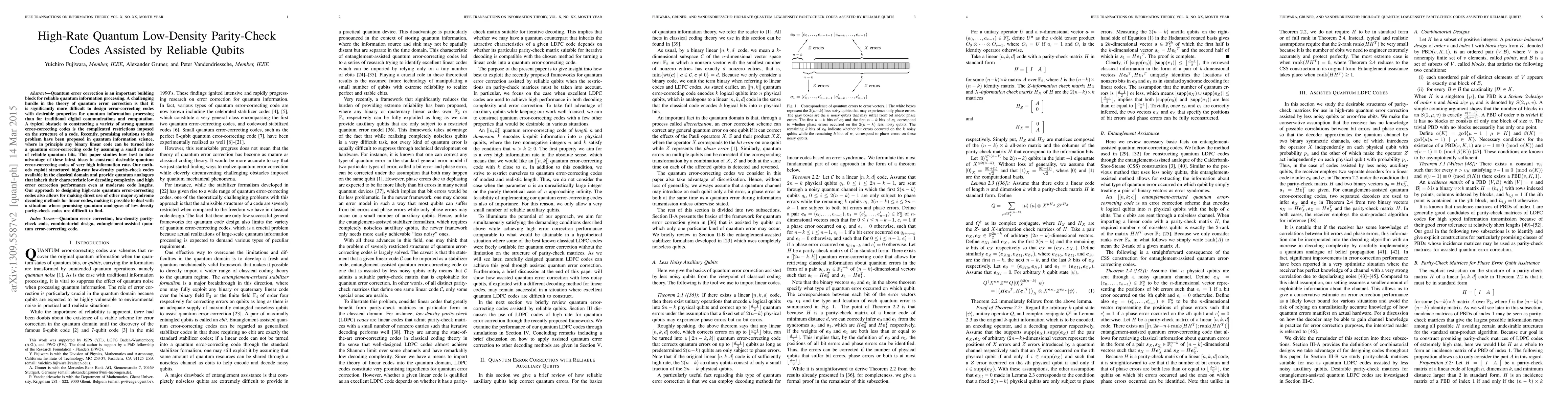 This paper explores the construction of high-rate quantum error-correcting codes using classical low-density parity-check codes, leveraging reliable qubits to achieve low decoding complexity and high error correction performance. The proposed method allows for the direct application of classical syndrome decoding techniques, even when quantum analogues are hard to find.