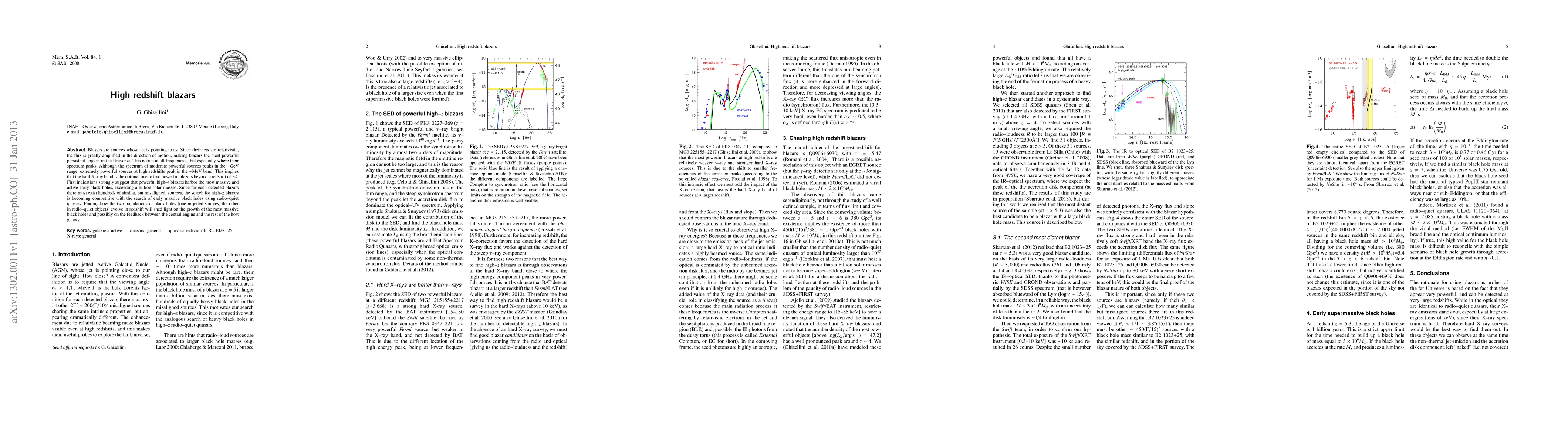 Blazars are sources whose jet is pointing to us. Since their jets are relativistic, the flux is greatly amplified in the direction of motion, making blazars the most powerful persistent objects in the Universe. This is true at all frequencies, but especially where their spectrum peaks. Although the spectrum of moderate powerful sources peaks in the ~GeV range, extremely powerful sources at high redshifts peak in the ~MeV band. This implies that the hard X-ray band is the optimal one to find powerful blazars beyond a redshift of ~4. First indications strongly suggest that powerful high-z blazars harbor the most massive and active early black holes, exceeding a billion solar masses. Since for each detected blazars there must exist hundreds of similar, but misaligned, sources, the search for high-z blazars is becoming competitive with the search of early massive black holes using radio-quiet quasars. Finding how the two populations of black holes (one in jetted sources, the other in radio-quiet objects) evolve in redshift will shed light on the growth of the most massive black holes and possibly on the feedback between the central engine and the rest of the host galaxy.