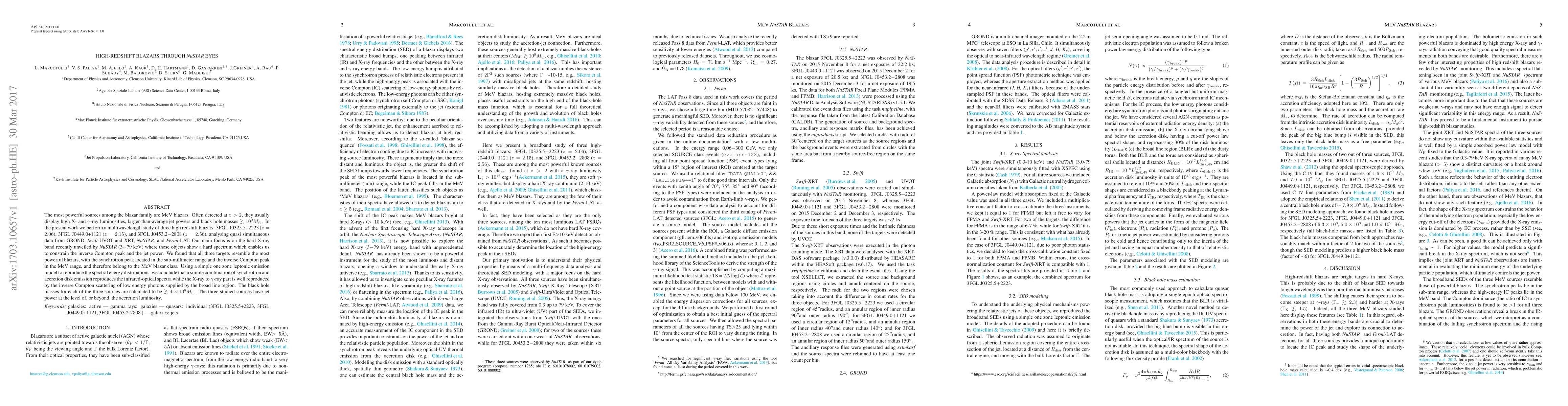 This study investigates three high-redshift MeV blazars using multiwavelength data from GROND, Swift, NuSTAR, and Fermi-LAT. The research focuses on the hard X-ray band (3-79 keV) revealed by NuSTAR, revealing a hard spectrum that helps constrain the inverse Compton peak and jet power, confirming the blazars' high luminosity and large black hole masses ($\gtrsim 4 \times 10^{8} M_{\odot}$).
