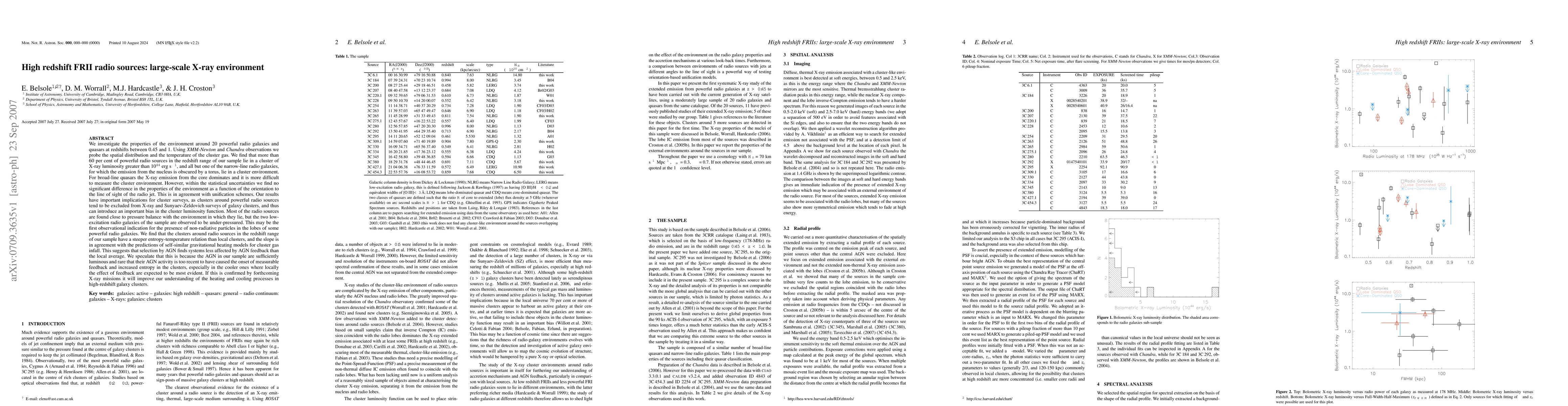 This study investigates the X-ray environment around 20 high-redshift FRII radio sources, finding that most lie in clusters of significant X-ray luminosity, with implications for cluster surveys and potential evidence for non-radiative particles in some radio galaxies. The clusters exhibit a steeper entropy-temperature relation compared to local clusters, suggesting less AGN feedback influence.
