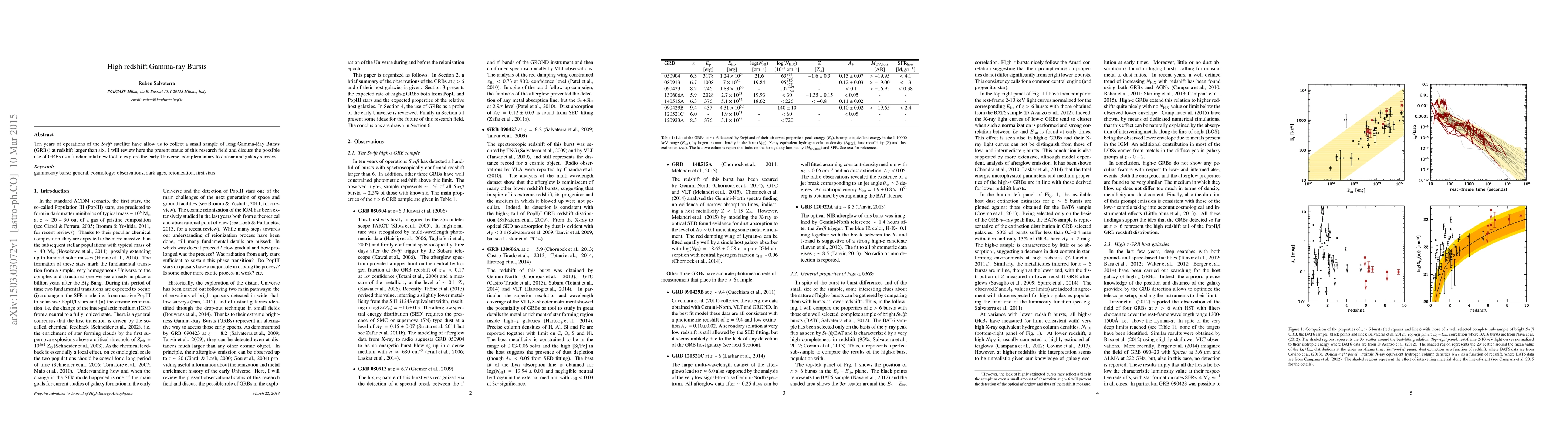 Ten years of operations of the Swift satellite have allow us to collect a small sample of long Gamma-Ray Bursts (GRBs) at redshift larger than six. I will review here the present status of this research field and discuss the possible use of GRBs as a fundamental new tool to explore the early Universe, complementary to quasar and galaxy surveys.