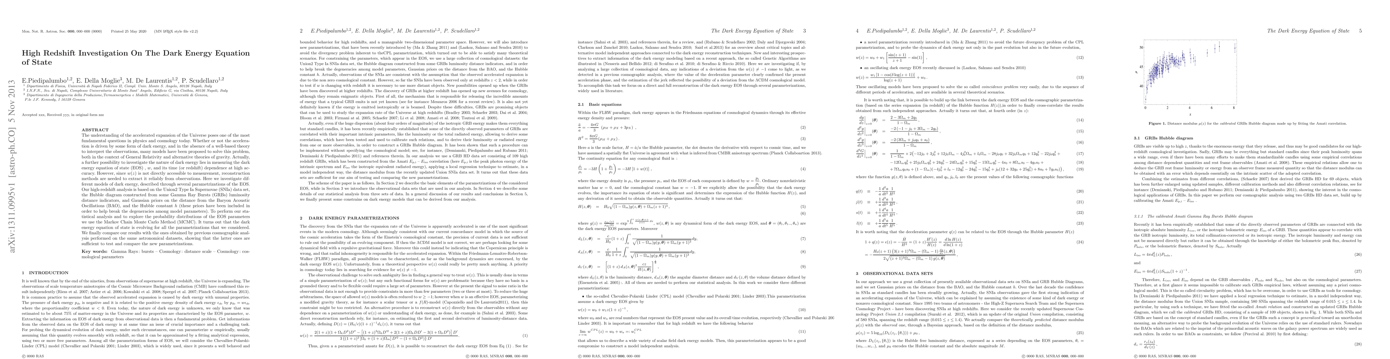 This paper investigates the dark energy equation of state (EOS) through high-redshift observations, including Type Ia Supernovae, Gamma Ray Bursts, and Baryon Acoustic Oscillations data, using the Markov Chain Monte Carlo Method. The study finds that the dark energy EOS evolves over time, and compares its findings with previous cosmographic analyses, confirming their adequacy for testing new parametrizations.
