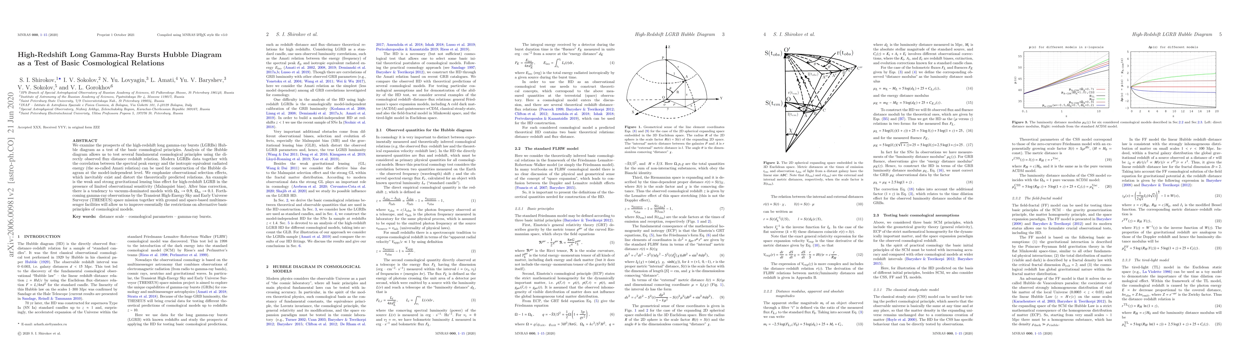 We examine the prospects of the high redshift Long Gamma Ray Bursts (LGRB) Hubble Diagram as a test of the basic cosmological principles. Analysis of the Hubble Diagram allows us to test several fundamental cosmological principles using the directly observed flux-distance-redshift relation. Modern LGRB data, together with the correlation between the spectral peak energy and the isotropic-equivalent radiated energy (the so-called Amati relation) can be used for construction of the Hubble Diagram at the model-independent level. We emphasise observational selection effects, which inevitably exist and distort the theoretically predicted relations. An example is the weak and strong gravitational lensing bias effect for high redshift LGRB in the presence of limited observational sensitivity (Malmquist bias). After bias correction, there is a tendency to vacuum dominated models with $\Omega_\Lambda \rightarrow 0.9$, $\Omega_\text{m} \rightarrow 0.1$. Forthcoming gamma-ray observations by the space THESEUS mission together with ground and space based multimessenger facilities will allow us to improve essentially the restrictions on alternative basic principles of cosmological models.