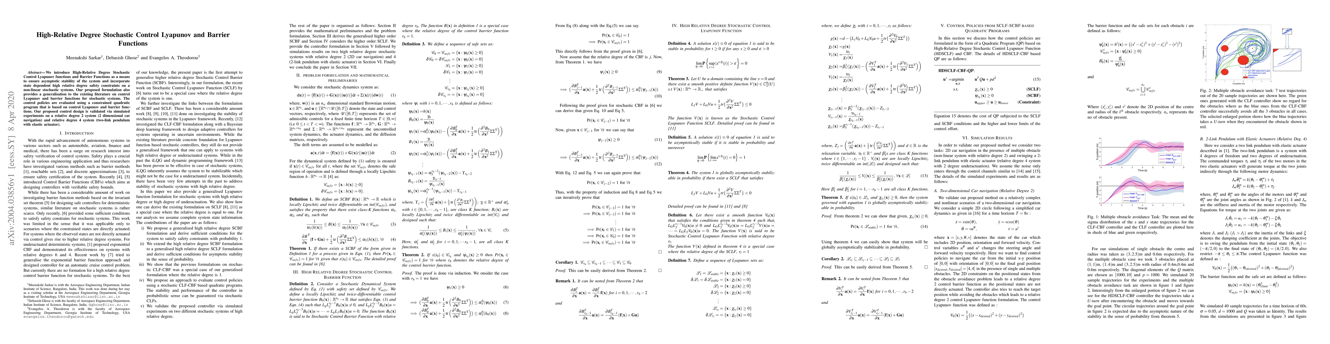 The development of a generalised framework for control Lyapunov functions and barrier functions that addresses high relative degree safety-critical constraints in stochastic systems.