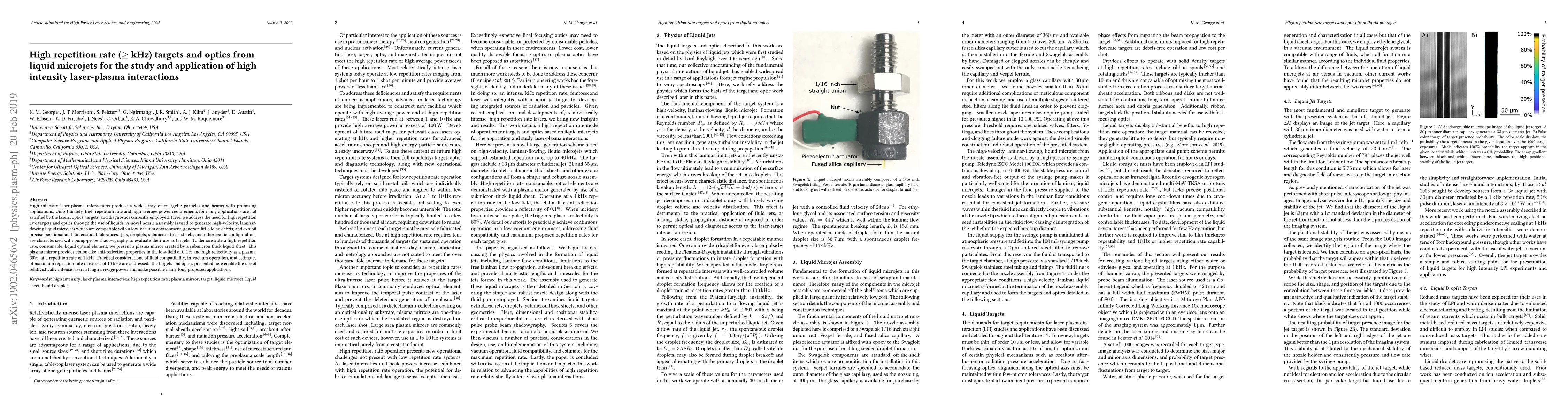 This paper introduces liquid microjets as high repetition rate targets and optics for studying high intensity laser-plasma interactions, addressing current limitations in laser technology. The novel nozzle assembly generates precise, debris-free liquid microjets, enabling applications at high average power and repetition rates exceeding 10 kHz.