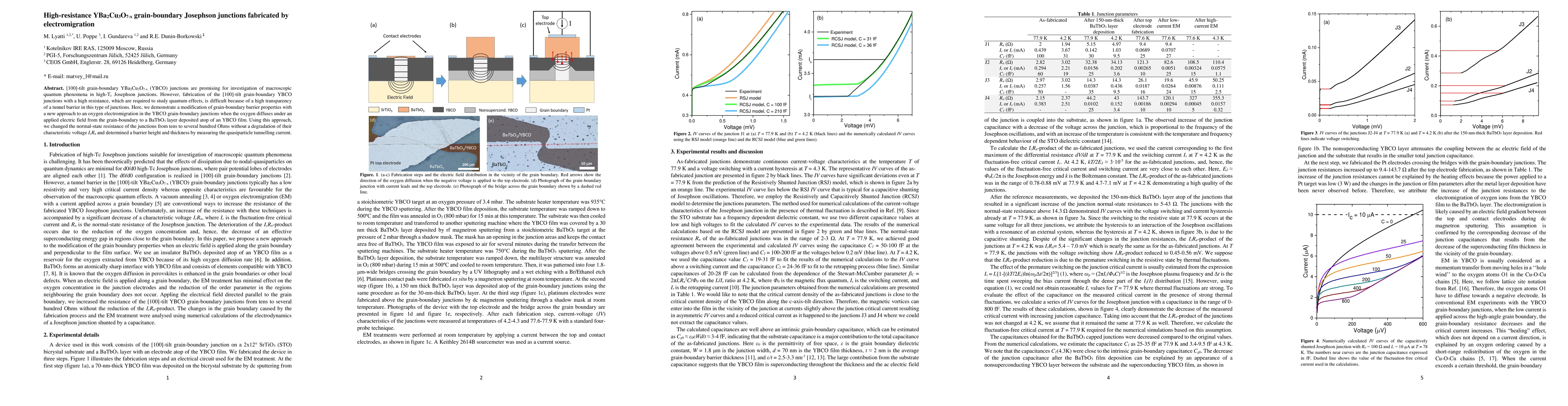 This paper presents a novel method to fabricate high-resistance YBa2Cu3O7-x (YBCO) grain-boundary Josephson junctions using oxygen electromigration, significantly increasing their normal-state resistance while maintaining their quantum characteristics. This approach modifies grain-boundary barrier properties by diffusing oxygen under an electric field to a BaTbO3 layer.