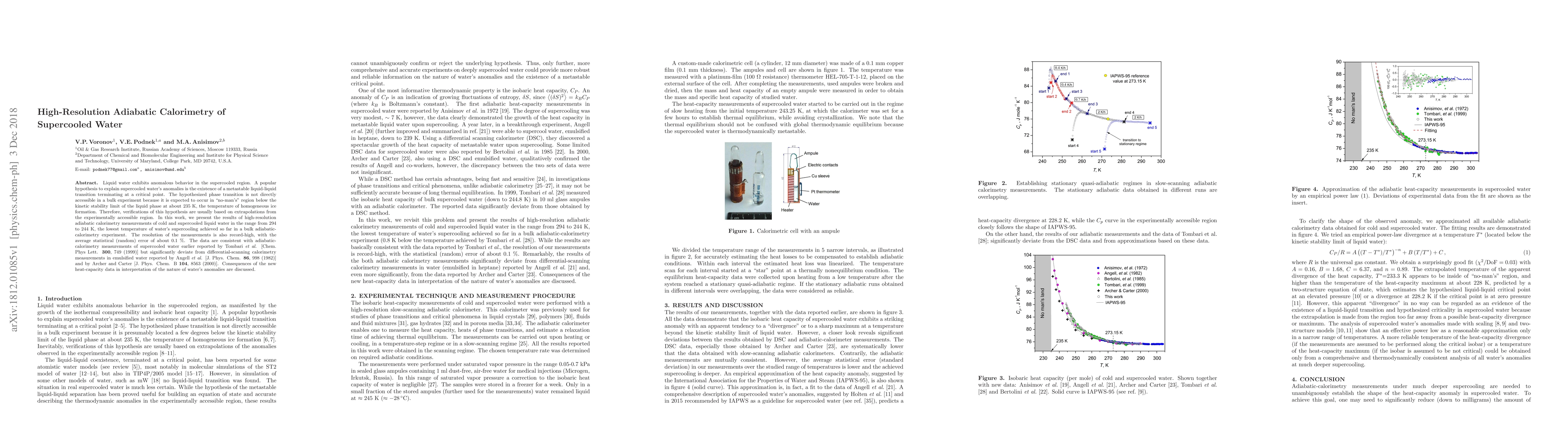 This study employs high-resolution adiabatic calorimetry to measure the heat capacity of supercooled water, revealing significant deviations from previous differential-scanning calorimetry results. The findings support a hypothesized liquid-liquid phase transition in supercooled water, challenging earlier interpretations.