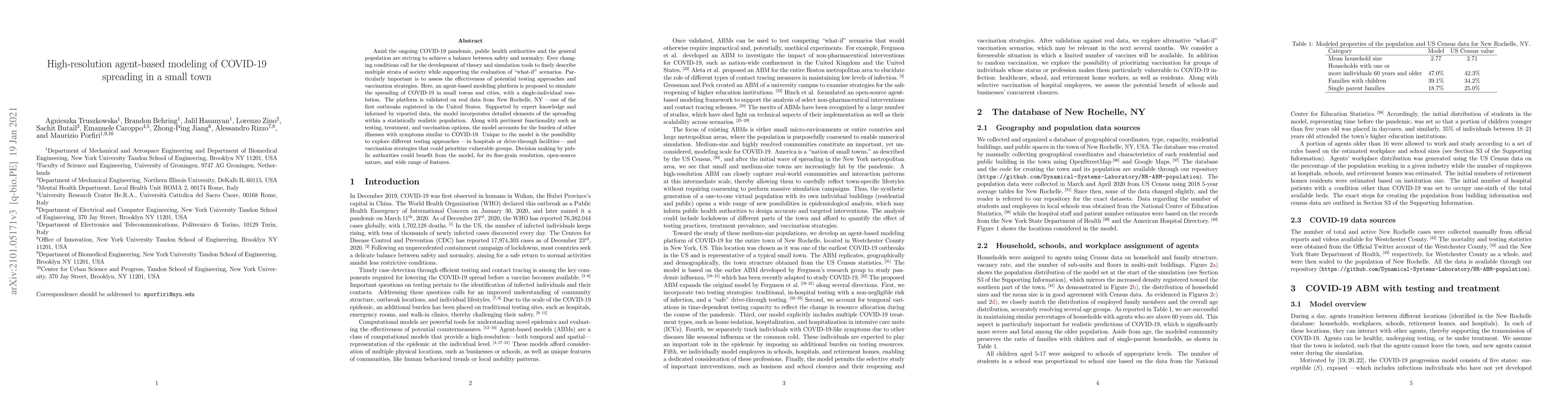 This research introduces an agent-based model simulating COVID-19 spread in small towns, validated with real data from New Rochelle, NY. The model, featuring individual resolution, allows exploration of testing approaches and vaccination strategies, offering valuable insights for public health decision-making.