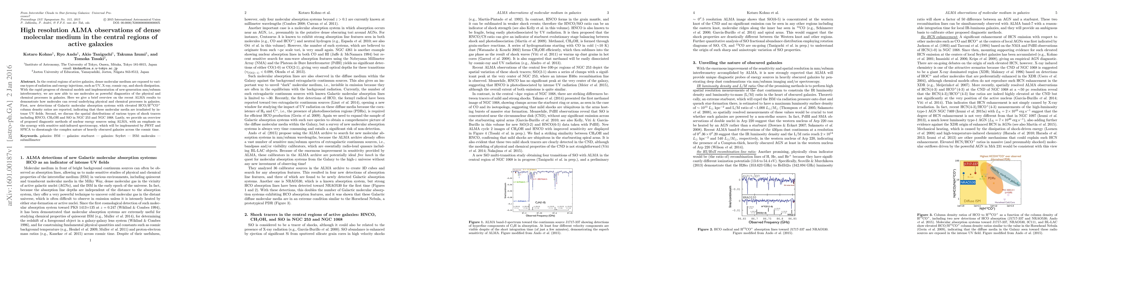This paper summarizes ALMA observations revealing the dense molecular medium in active galaxies, showing that elevated HCO/H$^{13}$CO$^+$ ratios indicate intense UV irradiation. It also discusses the spatial distributions of shock tracers in NGC 253 and NGC 1068, highlighting the potential for future studies using JWST and SPICA to better understand the obscured nature of these galaxies.
