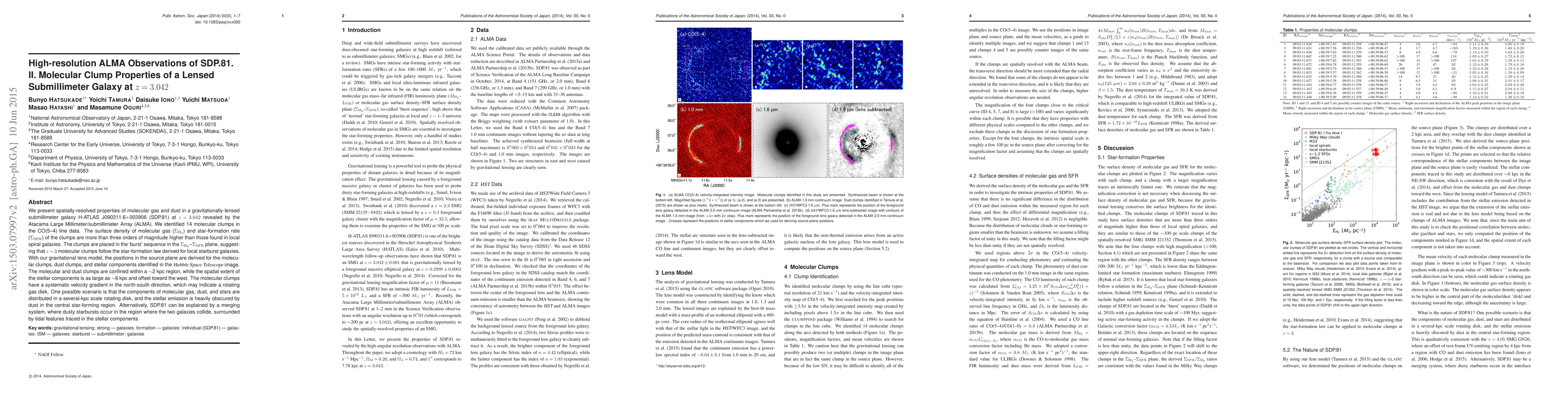 This paper uses ALMA observations to analyze molecular gas and dust in a lensed submillimeter galaxy (SDP.81) at $z=3.042$, identifying 14 high-density molecular clumps. These clumps exhibit star-formation rates and molecular gas densities orders of magnitude higher than those in local galaxies, suggesting they follow local starburst laws.