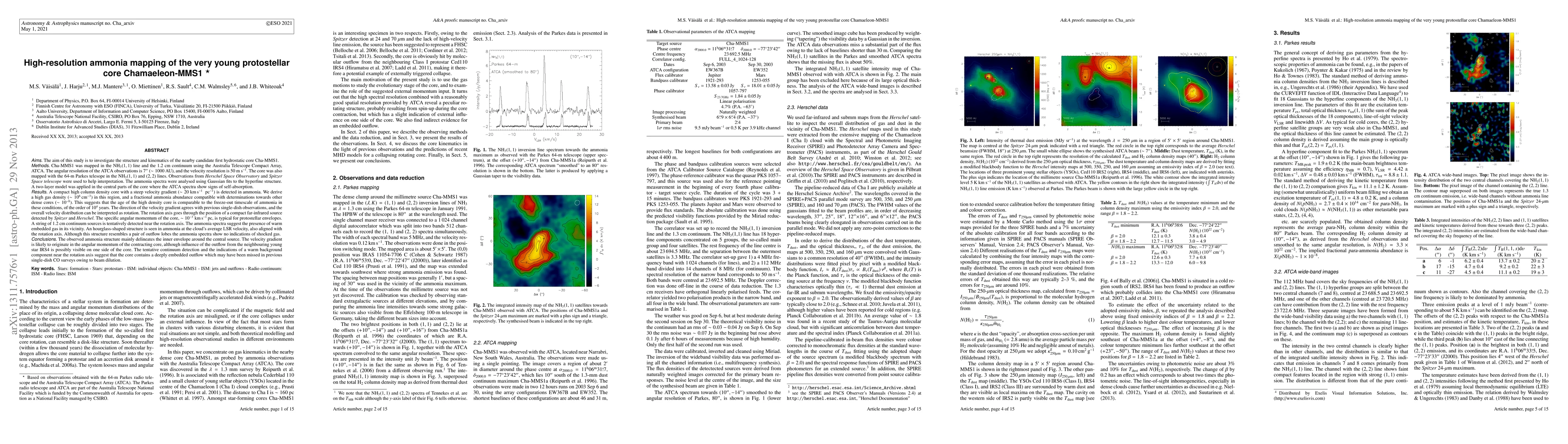 Cha-MMS1 was mapped in the NH_3(1,1) line and the 1.2 cm continuum using the Australia Telescope Compact Array, ATCA. The angular resolution of the ATCA observations is 7'' (~ 1000 AU), and the velocity resolution is 50 m s^{-1}. The core was also mapped with the 64-m Parkes telesope in the NH_3(1,1) and (2,2) lines. Observations from Herschel Space Observatory and Spitzer Space telescope were used to help interpretation. A compact high column density core with a steep velocity gradient is detected in ammonia, with a fractional ammonia abundance compatible with determinations towards other dense cores. The direction of the velocity gradient agrees with previous single-dish observations, and the overall velocity distribution can be interpreted as rotation. The rotation axis goes through the position of a compact far-infrared source detected by Spitzer and Herschel. The specific angular momentum of the core is typical for protostellar envelopes. A string of 1.2 cm continuum sources is tentatively detected near the rotation axis. The ammonia spectra suggest the presence of warm embedded gas in its vicinity. An hourglass-shaped structure is seen in ammonia at the cloud's average LSR velocity, also aligned with the rotation axis. Although this structure resembles a pair of outflow lobes the ammonia spectra show no indications of shocked gas. The observed ammonia structure mainly delineates the inner envelope around the central source. The velocity gradient is likely to originate in the angular momentum of the contracting core, although influence of the outflow from the neighbouring young star IRS4 is possibly visible on one side of the core. The tentative continuum detection and the indications of a warm background component near the rotation axis suggest that the core contains a deeply embedded outflow which may have been missed in previous single-dish CO surveys owing to beam dilution.