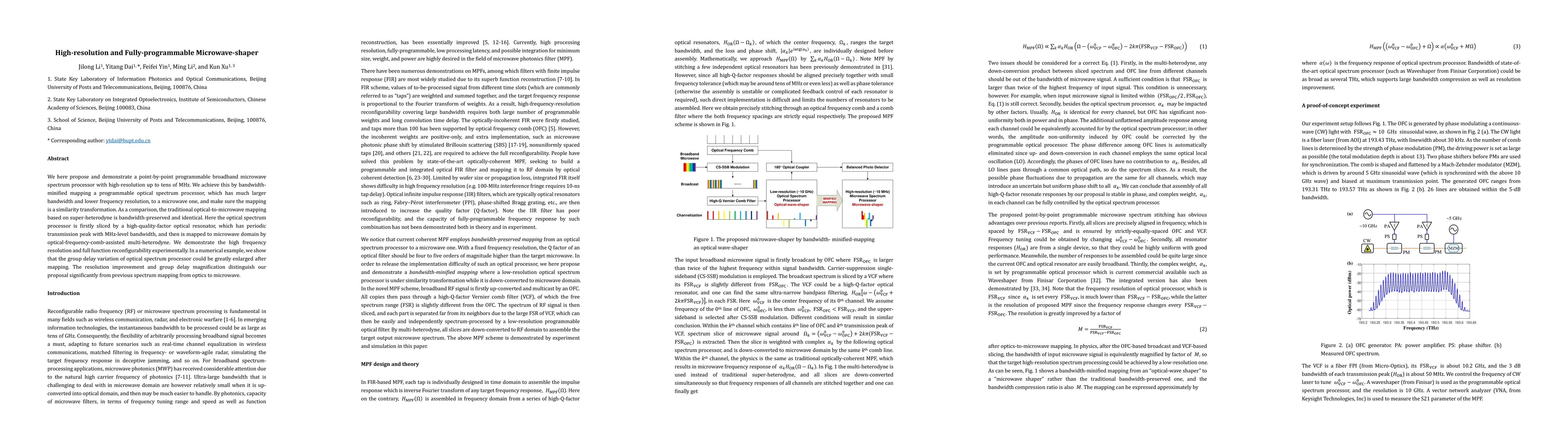 We here propose and demonstrate a point-by-point programmable broadband microwave spectrum processor with high-resolution up to tens of MHz. We achieve this by bandwidth-minified mapping a programmable optical spectrum processor, which has much larger bandwidth and lower frequency resolution, to a microwave one, and make sure the mapping is a similarity transformation. As a comparison, the traditional optical-to-microwave mapping based on super-heterodyne is bandwidth-preserved and identical. Here the optical spectrum processor is firstly sliced by a high-quality-factor optical resonator, which has periodic transmission peak with MHz-level bandwidth, and then is mapped to microwave domain by optical-frequency-comb-assisted multi-heterodyne. We demonstrate the high frequency resolution and full function reconfigurability experimentally. In a numerical example, we show that the group delay variation of optical spectrum processor could be greatly enlarged after mapping. The resolution improvement and group delay magnification distinguish our proposal significantly from previous spectrum mapping from optics to microwave.