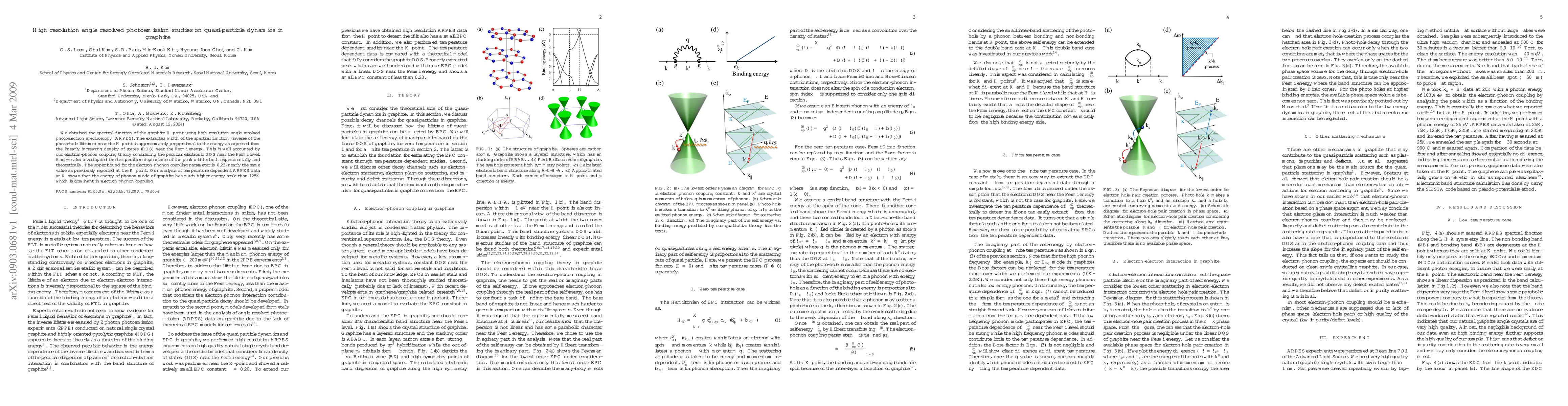 We obtained the spectral function of the graphite H point using high resolution angle resolved photoelectron spectroscopy (ARPES). The extracted width of the spectral function (inverse of the photo-hole lifetime) near the H point is approximately proportional to the energy as expected from the linearly increasing density of states (DOS) near the Fermi energy. This is well accounted by our electron-phonon coupling theory considering the peculiar electronic DOS near the Fermi level. And we also investigated the temperature dependence of the peak widths both experimentally and theoretically. The upper bound for the electron-phonon coupling parameter is ~0.23, nearly the same value as previously reported at the K point. Our analysis of temperature dependent ARPES data at K shows that the energy of phonon mode of graphite has much higher energy scale than 125K which is dominant in electron-phonon coupling.