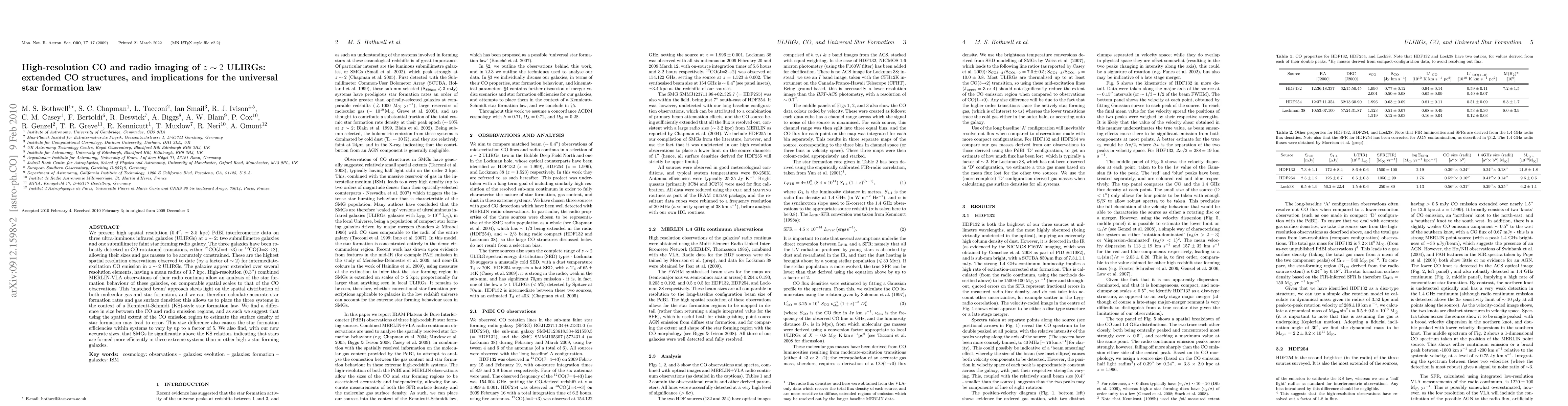 This study uses high-resolution interferometric data to analyze CO and radio imaging of three z~2 ULIRGs, revealing extended CO structures and significant star formation efficiencies. The findings suggest that the spatial extent of CO emission may not accurately estimate star formation surface density, leading to potential errors in such estimates.