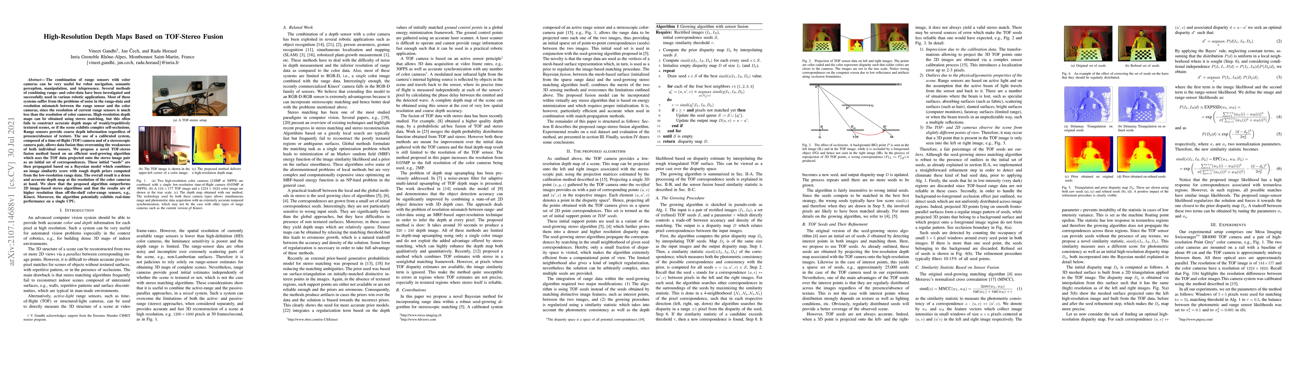 This paper proposes a novel fusion method combining time-of-flight (TOF) and stereoscopic cameras to generate high-resolution depth maps, addressing the noise and resolution mismatch issues of individual sensors. The TOF-stereo fusion leverages an efficient seed-growing algorithm to achieve dense and accurate depth maps at the resolution of color cameras, outperforming traditional stereo methods.