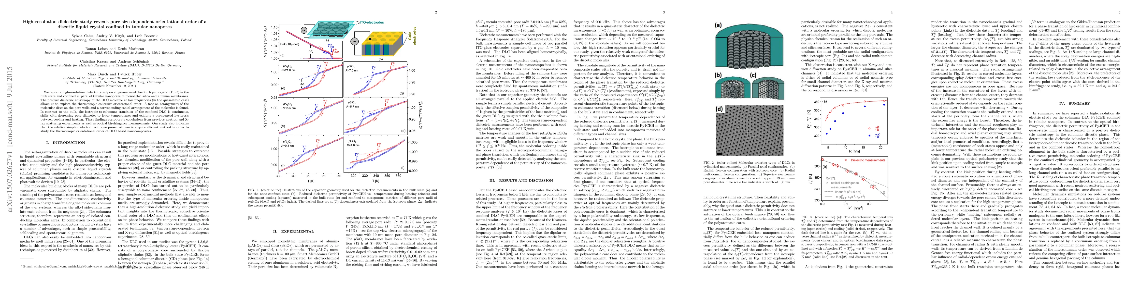 This study reveals the pore size-dependent orientational order of a pyrene-based discotic liquid crystal confined in tubular nanopores using high-resolution dielectric measurements. The confined liquid crystal exhibits a continuous isotropic-to-columnar transition with pronounced hysteresis, contrasting with the bulk behavior.
