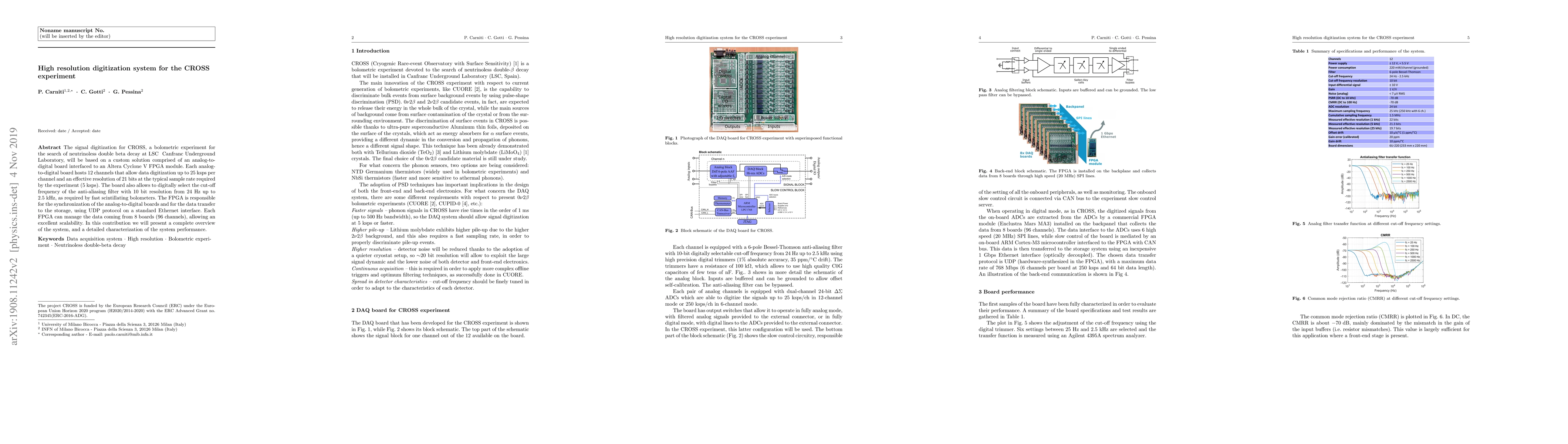 A custom digitization system for the CROSS experiment uses high-resolution analog-to-digital boards with FPGAs to capture neutrinoless double beta decay signals. The system offers excellent scalability and performance, meeting the experiment's requirements.