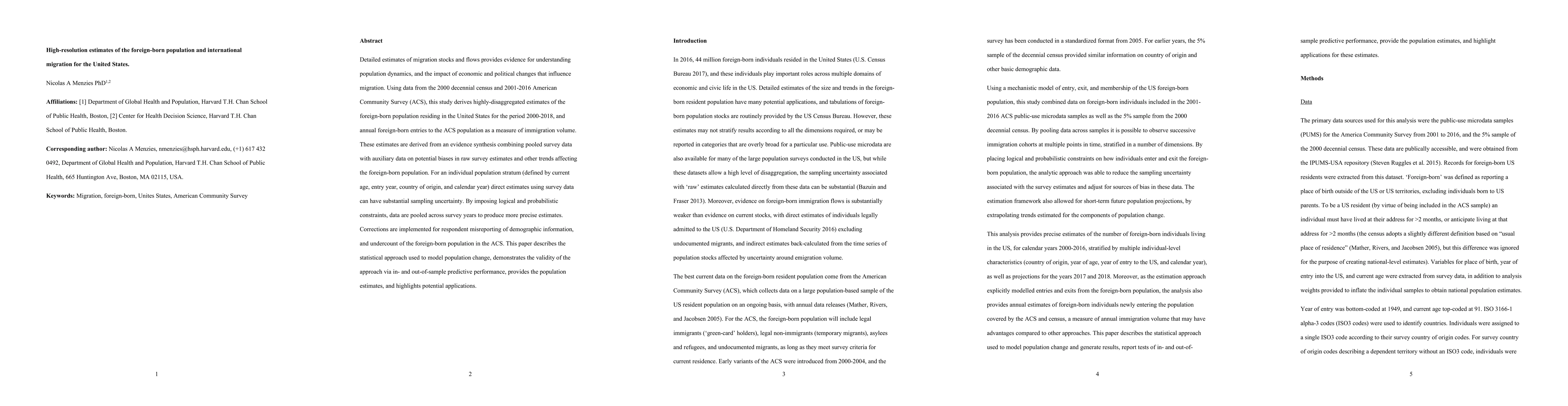This study provides highly-disaggregated estimates of the foreign-born population in the U.S. from 2000-2018 using data from the 2000 census and ACS surveys, employing statistical methods to correct biases and improve precision. The approach demonstrates strong predictive performance and offers insights into population dynamics and migration trends.
