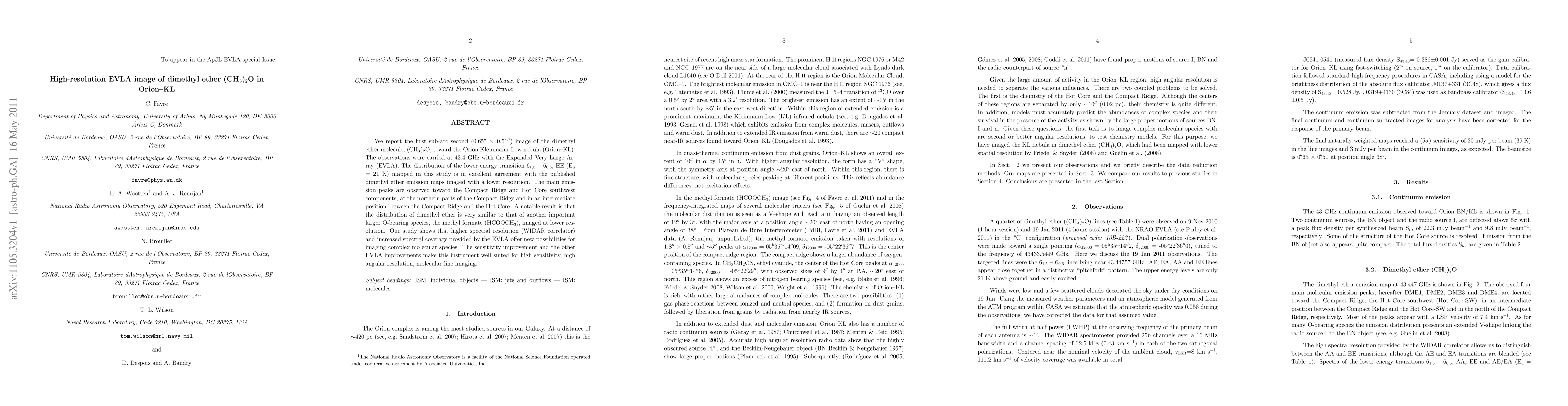 We report the first sub-arc second (0.65$\arcsec$ $\times$ 0.51$\arcsec$) image of the dimethyl ether molecule, (CH$_{3}$)$_{2}$O, toward the Orion Kleinmann-Low nebula (Orion--KL). The observations were carried at 43.4 GHz with the Expanded Very Large Array (EVLA). The distribution of the lower energy transition 6$_{1,5} - 6_{0,6}$, EE (E$\rm_{u}$ = 21 K) mapped in this study is in excellent agreement with the published dimethyl ether emission maps imaged with a lower resolution. The main emission peaks are observed toward the Compact Ridge and Hot Core southwest components, at the northern parts of the Compact Ridge and in an intermediate position between the Compact Ridge and the Hot Core. A notable result is that the distribution of dimethyl ether is very similar to that of another important larger O-bearing species, the methyl formate (HCOOCH$_{3}$), imaged at lower resolution. Our study shows that higher spectral resolution (WIDAR correlator) and increased spectral coverage provided by the EVLA offer new possibilities for imaging complex molecular species. The sensitivity improvement and the other EVLA improvements make this instrument well suited for high sensitivity, high angular resolution, molecular line imaging.