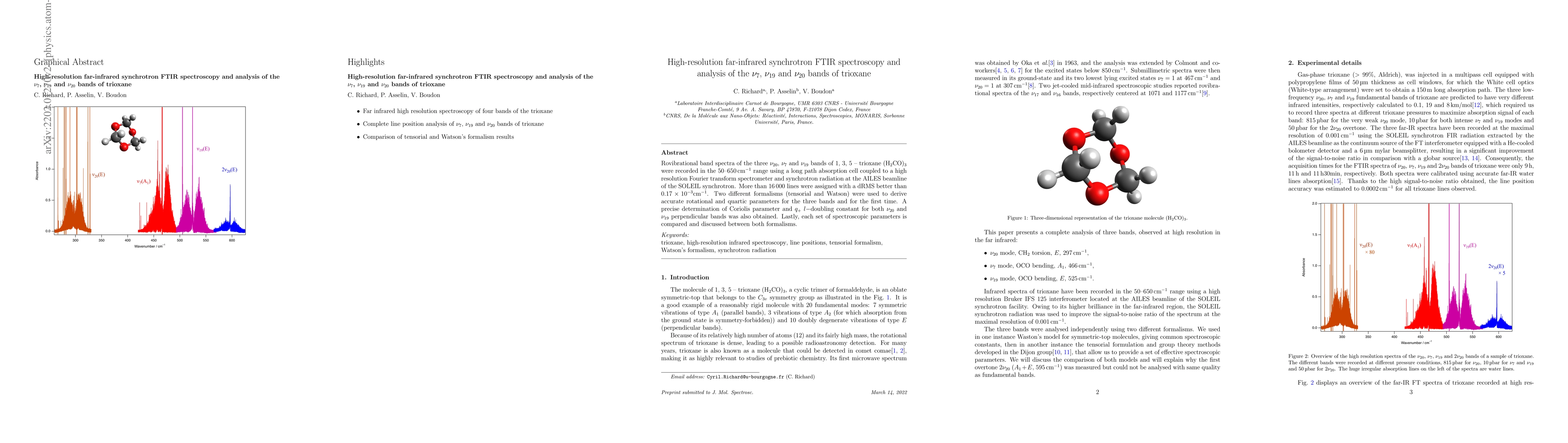 Researchers used synchrotron FTIR spectroscopy to analyze the vibrational bands of trioxane, assigning over 16,000 lines with high accuracy, including precise determination of Coriolis parameters for the first time.