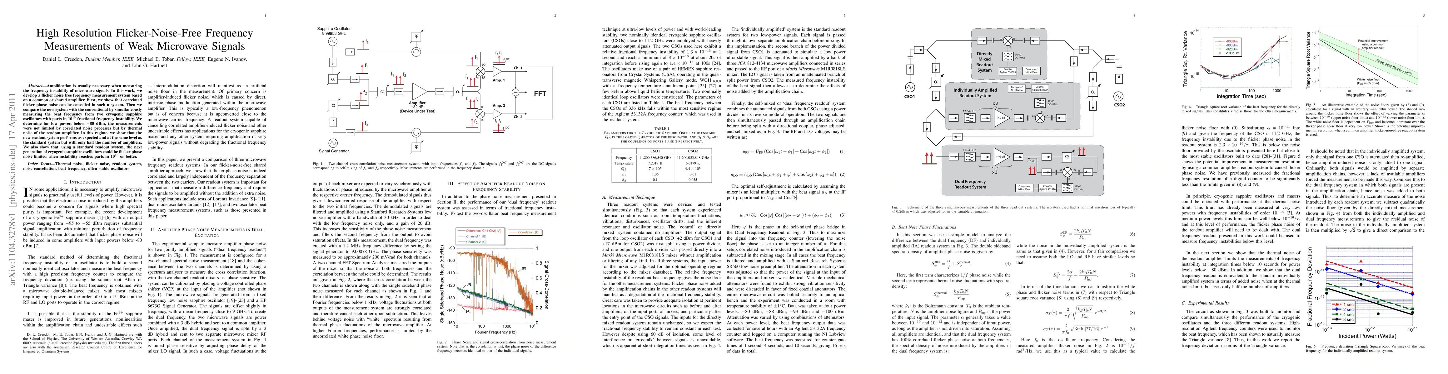 This paper develops a flicker noise-free frequency measurement system using a shared amplifier to cancel correlated flicker phase noise. It demonstrates that the new system performs comparably to conventional methods with half the number of amplifiers, especially for weak microwave signals below -80 dBm, where thermal noise becomes the limiting factor.
