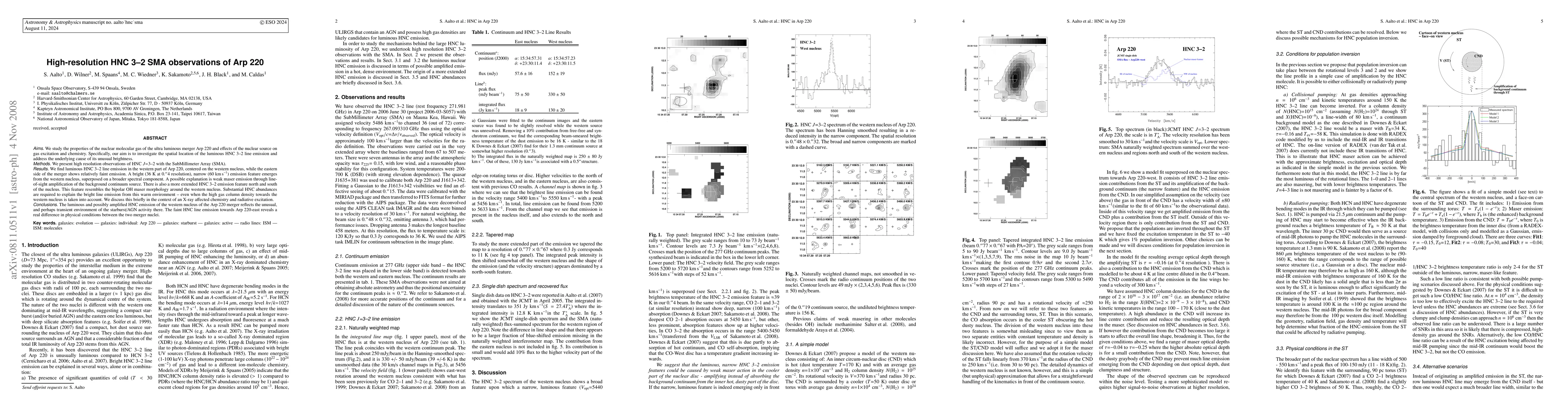 We present high resolution (0."4) observations of HNC J=3-2 with the SubMillimeter Array (SMA). We find luminous HNC 3-2 line emission in the western part of Arp220, centered on the western nucleus, while the eastern side of the merger shows relatively faint emission. A bright (36 K), narrow (60 km/s) emission feature emerges from the western nucleus, superposed on a broader spectral component. A possible explanation is weak maser emission through line-of-sight amplification of the background continuum source. There is also a more extended HNC 3-2 emission feature north and south of the nucleus. This feature resembles the bipolar OH maser morphology around the western nucleus. Substantial HNC abundances are required to explain the bright line emission from this warm environment. We discuss this briefly in the context of an X-ray chemistry and radiative excitation. We conclude that the luminous and possibly amplified HNC emission of the western nucleus of the Arp220 merger reflects the unusual, and perhaps transient, environment of the starburst/AGN activity there. The faint HNC line emission towards Arp220-east reveals a real difference in physical conditions between the two merger nuclei.