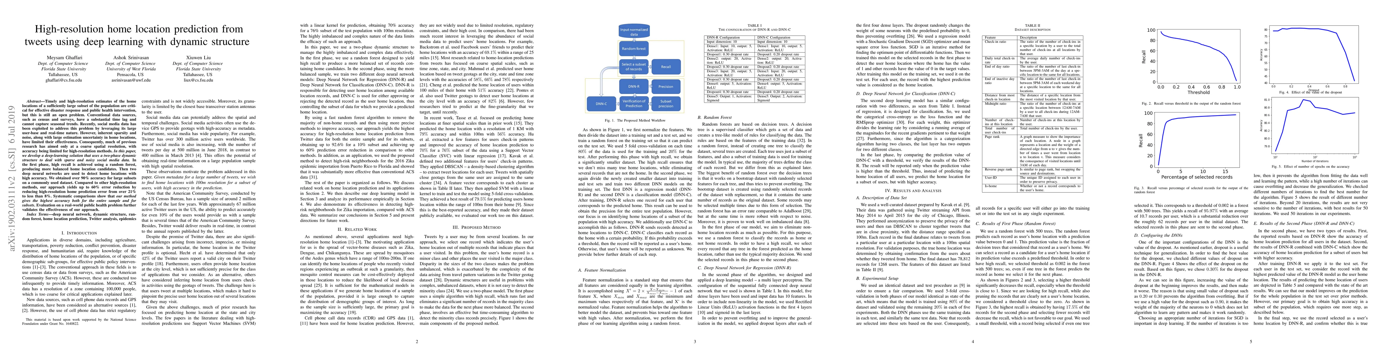 Timely and high-resolution estimates of the home locations of a sufficiently large subset of the population are critical for effective disaster response and public health intervention, but this is still an open problem. Conventional data sources, such as census and surveys, have a substantial time lag and cannot capture seasonal trends. Recently, social media data has been exploited to address this problem by leveraging its large user-base and real-time nature. However, inherent sparsity and noise, along with large estimation uncertainty in home locations, have limited their effectiveness. Consequently, much of previous research has aimed only at a coarse spatial resolution, with accuracy being limited for high-resolution methods. In this paper, we develop a deep-learning solution that uses a two-phase dynamic structure to deal with sparse and noisy social media data. In the first phase, high recall is achieved using a random forest, producing more balanced home location candidates. Then two deep neural networks are used to detect home locations with high accuracy. We obtained over 90% accuracy for large subsets on a commonly used dataset. Compared to other high-resolution methods, our approach yields up to 60% error reduction by reducing high-resolution home prediction error from over 21% to less than 8%. Systematic comparisons show that our method gives the highest accuracy both for the entire sample and for subsets. Evaluation on a real-world public health problem further validates the effectiveness of our approach.