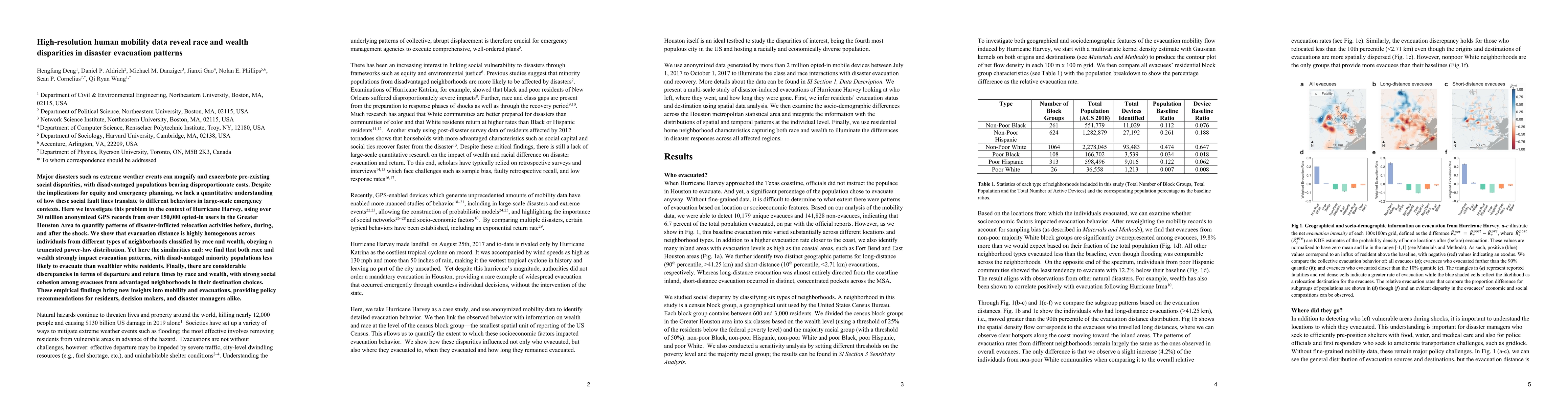 This study uses high-resolution GPS data to reveal significant disparities in evacuation patterns during Hurricane Harvey, showing that race and wealth strongly influence evacuation likelihood and timing, with disadvantaged populations evacuating less frequently and returning later. These findings underscore the need for targeted emergency planning to address social inequities.