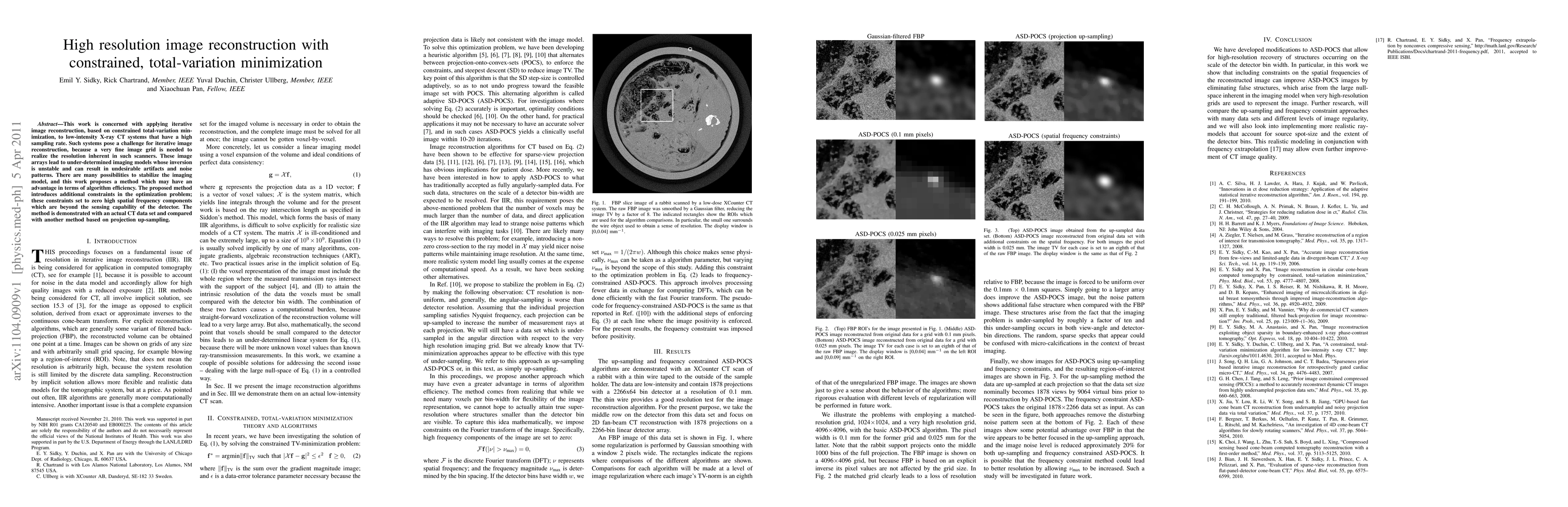 This work is concerned with applying iterative image reconstruction, based on constrained total-variation minimization, to low-intensity X-ray CT systems that have a high sampling rate. Such systems pose a challenge for iterative image reconstruction, because a very fine image grid is needed to realize the resolution inherent in such scanners. These image arrays lead to under-determined imaging models whose inversion is unstable and can result in undesirable artifacts and noise patterns. There are many possibilities to stabilize the imaging model, and this work proposes a method which may have an advantage in terms of algorithm efficiency. The proposed method introduces additional constraints in the optimization problem; these constraints set to zero high spatial frequency components which are beyond the sensing capability of the detector. The method is demonstrated with an actual CT data set and compared with another method based on projection up-sampling.