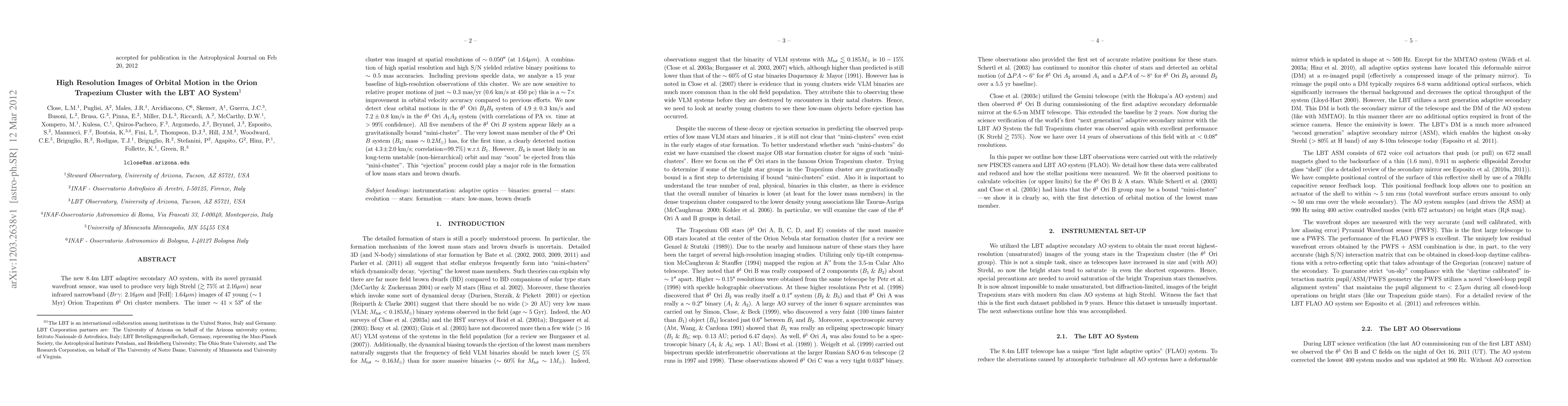 The new 8.4m LBT adaptive secondary AO system, with its novel pyramid wavefront sensor, was used to produce very high Strehl (75% at 2.16 microns) near infrared narrowband (Br gamma: 2.16 microns and [FeII]: 1.64 microns) images of 47 young (~1 Myr) Orion Trapezium theta1 Ori cluster members. The inner ~41x53" of the cluster was imaged at spatial resolutions of ~0.050" (at 1.64 microns). A combination of high spatial resolution and high S/N yielded relative binary positions to ~0.5 mas accuracies. Including previous speckle data, we analyse a 15 year baseline of high-resolution observations of this cluster. We are now sensitive to relative proper motions of just ~0.3 mas/yr (0.6 km/s at 450 pc) this is a ~7x improvement in orbital velocity accuracy compared to previous efforts. We now detect clear orbital motions in the theta1 Ori B2/B3 system of 4.9+/-0.3 km/s and 7.2+/-0.8 km/s in the theta1 Ori A1/A2 system (with correlations of PA vs. time at >99% confidence). All five members of the theta1 Ori B system appear likely as a gravitationally bound "mini-cluster". The very lowest mass member of the theta1 Ori B system (B4; mass ~0.2 Msun) has, for the first time, a clearly detected motion (at 4.3+/-2.0 km/s; correlation=99.7%) w.r.t B1. However, B4 is most likely in an long-term unstable (non-hierarchical) orbit and may "soon" be ejected from this "mini-cluster". This "ejection" process could play a major role in the formation of low mass stars and brown dwarfs.