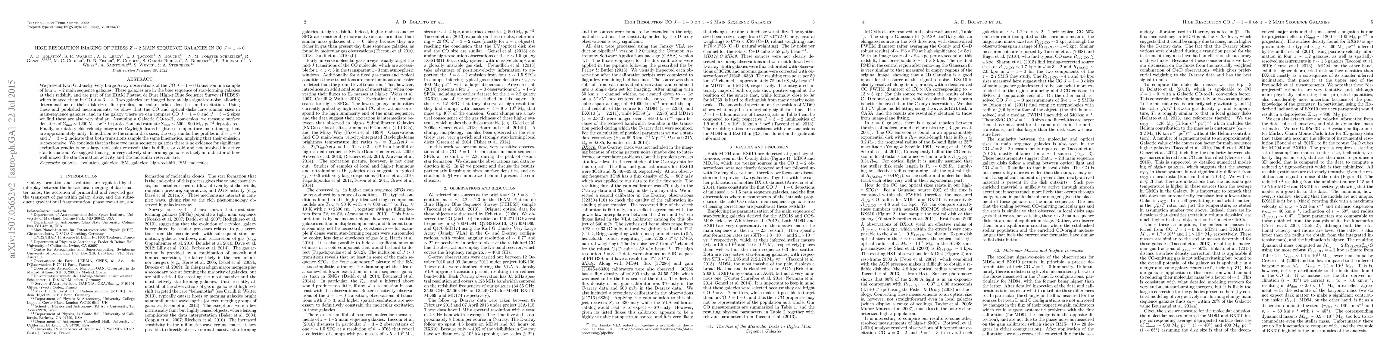 Researchers studied CO J=1-0 transitions in four $z ext{ extminus}2$ main sequence galaxies, finding similar disk sizes and kinematics between CO J=1-0 and J=3-2 transitions. The study suggests that the line ratio $r_{31}$ is an indicator of how well mixed star formation activity and molecular reservoirs are in actively star-forming galaxies.