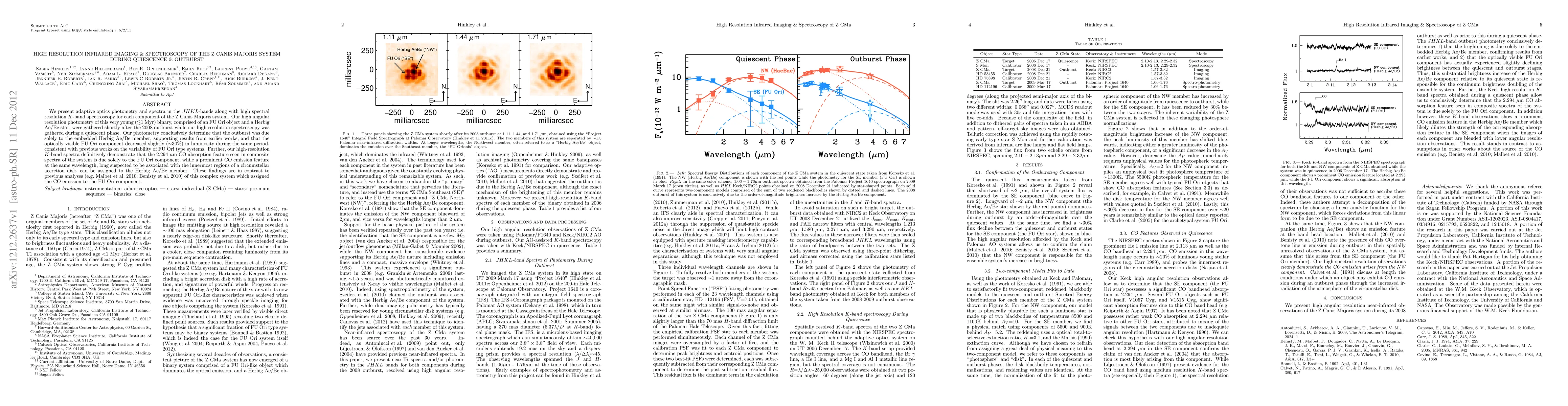 The research utilizes adaptive optics to study the Z Canis Majoris binary system, identifying the FU Ori object as the outburst source and confirming its slight luminosity decrease during an outburst. High-resolution K-band spectra definitively attribute the CO absorption feature to the FU Ori component and the emission feature to the Herbig Ae/Be member, contrasting previous analyses.