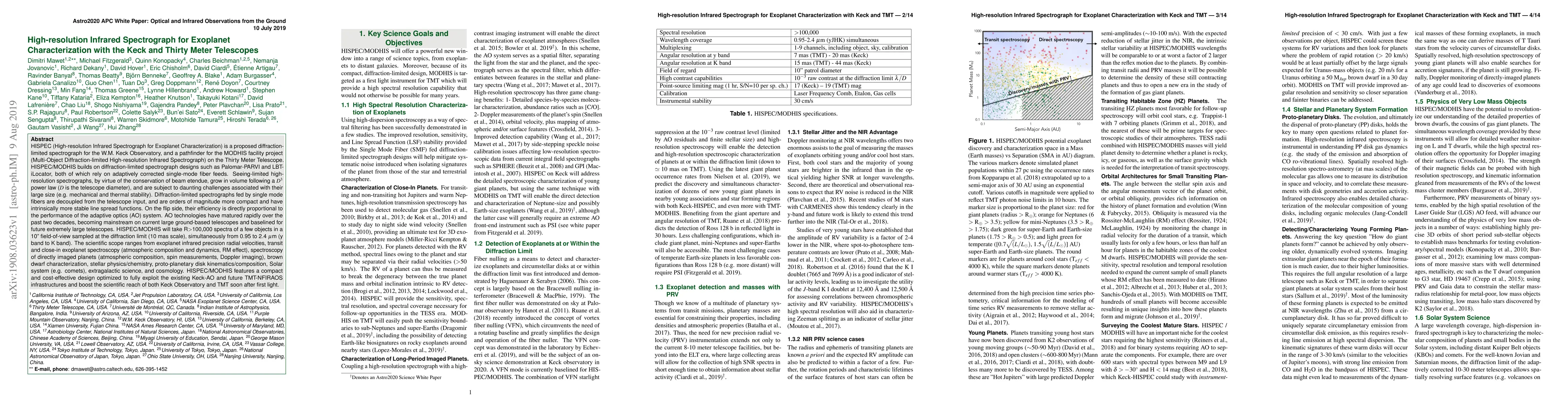 HISPEC is a proposed diffraction-limited spectrograph for the Keck Observatory and a precursor for the MODHIS project on the Thirty Meter Telescope, aiming to achieve high-resolution infrared spectra at the diffraction limit. It leverages advanced adaptive optics to provide compact, efficient, and stable spectra for exoplanet characterization and other astrophysical studies.