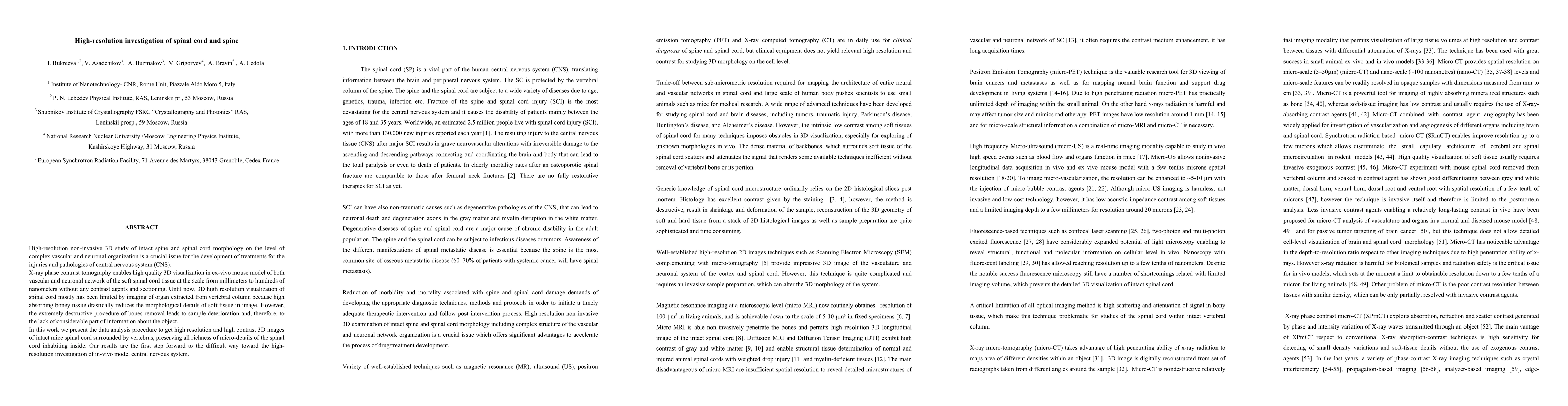 This paper presents a high-resolution, non-invasive 3D imaging technique using X-ray phase contrast tomography to visualize the intact spine and spinal cord in an ex-vivo mouse model, revealing complex vascular and neuronal structures without the need for contrast agents or tissue removal. This method preserves micro-details and represents a significant advancement towards in-vivo central nervous system imaging.
