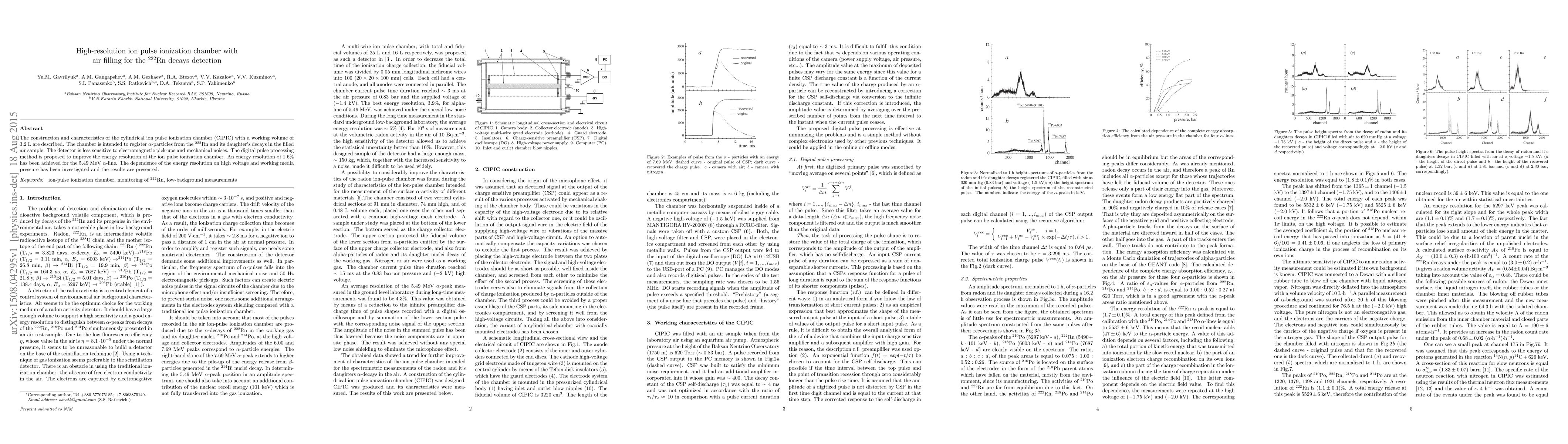 The construction and characteristics of the cylindrical ion pulse ionization chamber (CIPIC) with a working volume of 3.2 L are described. The chamber is intended to register alpha-particles from the $^{222}$Rn and its daughter's decays in the filled air sample. The detector is less sensitive to electromagnetic pick-ups and mechanical noises. The digital pulse processing method is proposed to improve the energy resolution of the ion pulse ionization chamber. An energy resolution of 1.6% has been achieved for the 5.49 MeV alpha-line. The dependence of the energy resolution on high voltage and working media pressure has been investigated and the results are presented.
