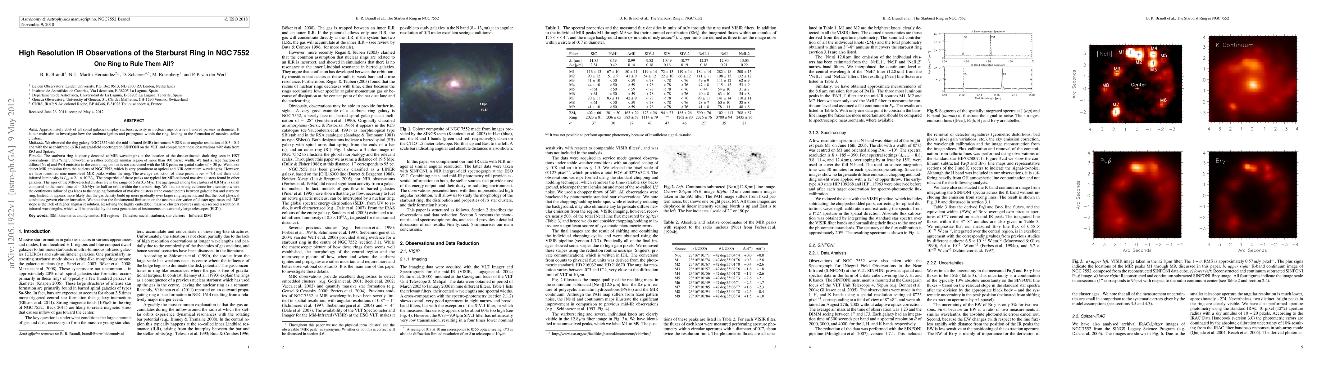 Researchers detected a complex starburst ring in galaxy NGC 7552 using high-resolution mid-infrared observations, finding nine unresolved MIR peaks with ages around 6 million years.