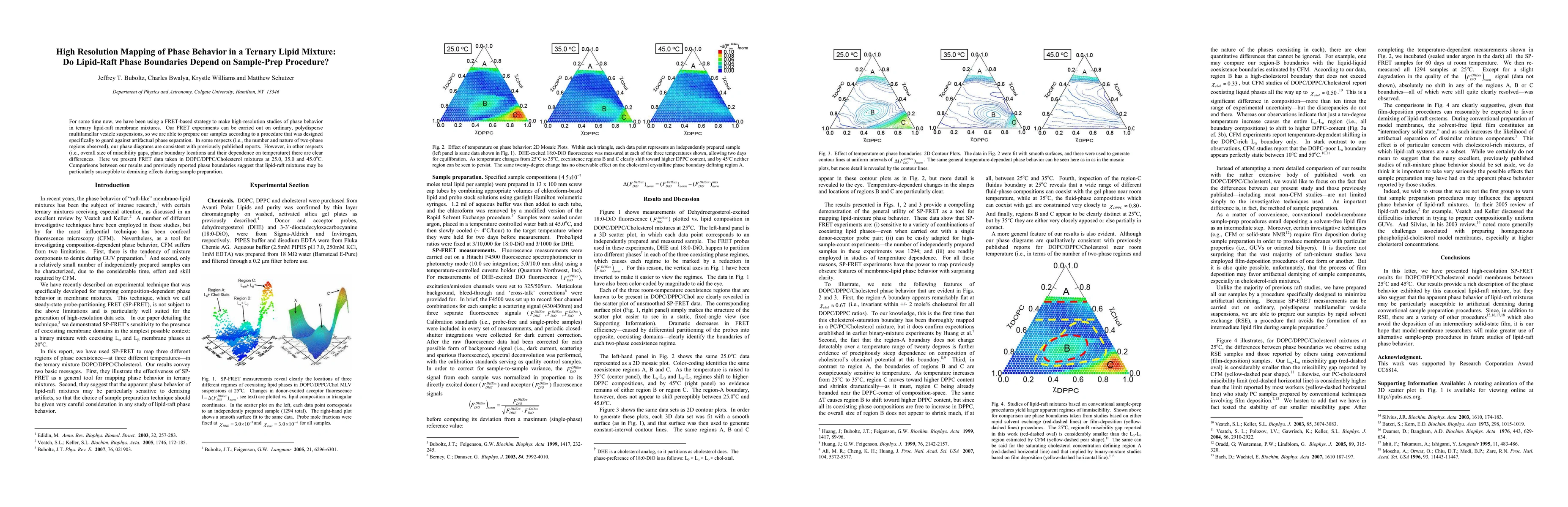 For some time now, we have been using a FRET-based strategy to make high-resolution studies of phase behavior in ternary lipid-raft membrane mixtures. Our FRET experiments can be carried out on ordinary, polydisperse multilamellar vesicle suspensions, so we are able to prepare our samples according to a procedure that was designed specifically to guard against artifactual phase separation. In some respects (i.e., the number and nature of two-phase regions observed), our phase diagrams are consistent with previously published reports. However, in other respects (i.e., overall size of miscibility gaps, phase boundary locations and their dependence on temperature) there are clear differences. Here we present FRET data taken in DOPC/DPPC/Cholesterol mixtures at 25.0, 35.0 and 45.0oC. Comparisons between our results and previously reported phase boundaries suggest that lipid-raft mixtures may be particularly susceptible to demixing effects during sample preparation.