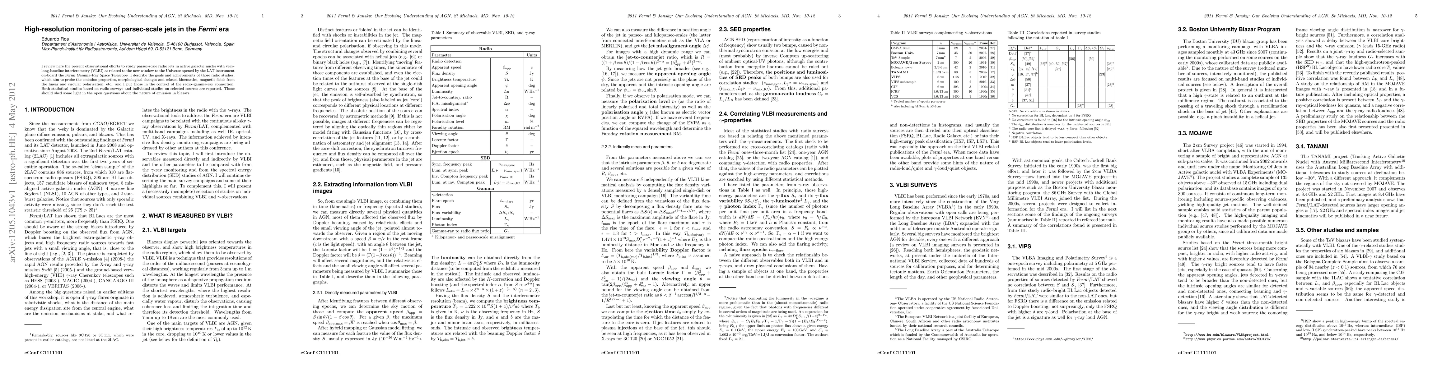 This paper reviews observational efforts using VLBI to study parsec-scale jets in active galactic nuclei, emphasizing the new insights provided by the Fermi Gamma-Ray Space Telescope's LAT instrument. It discusses goals and achievements in probing emission properties, morphological changes, and magnetic fields, contextualizing these findings within the radio-gamma-ray connection to better understand blazar emissions.