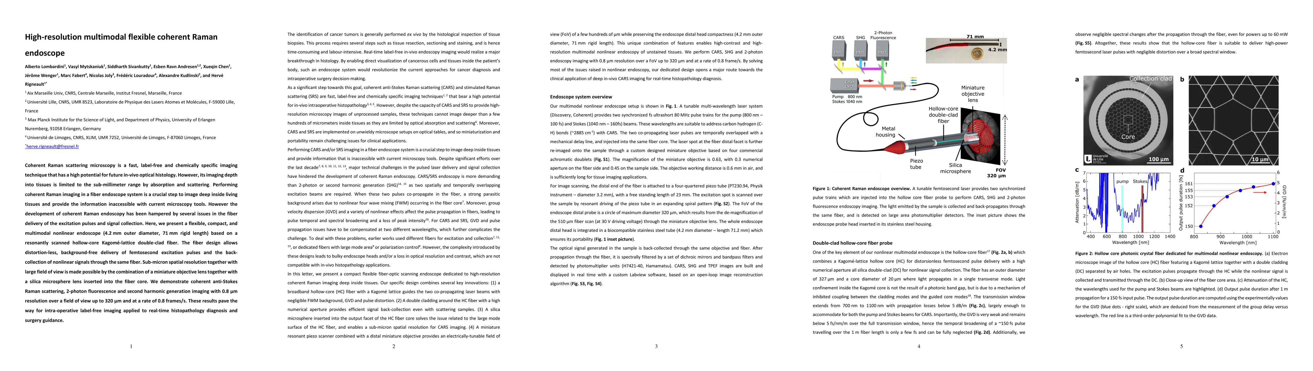 Researchers developed a flexible, compact endoscope that uses coherent Raman scattering to image deep into living tissues with high resolution and large field of view, paving the way for label-free imaging in real-time histopathology diagnosis and surgery guidance.