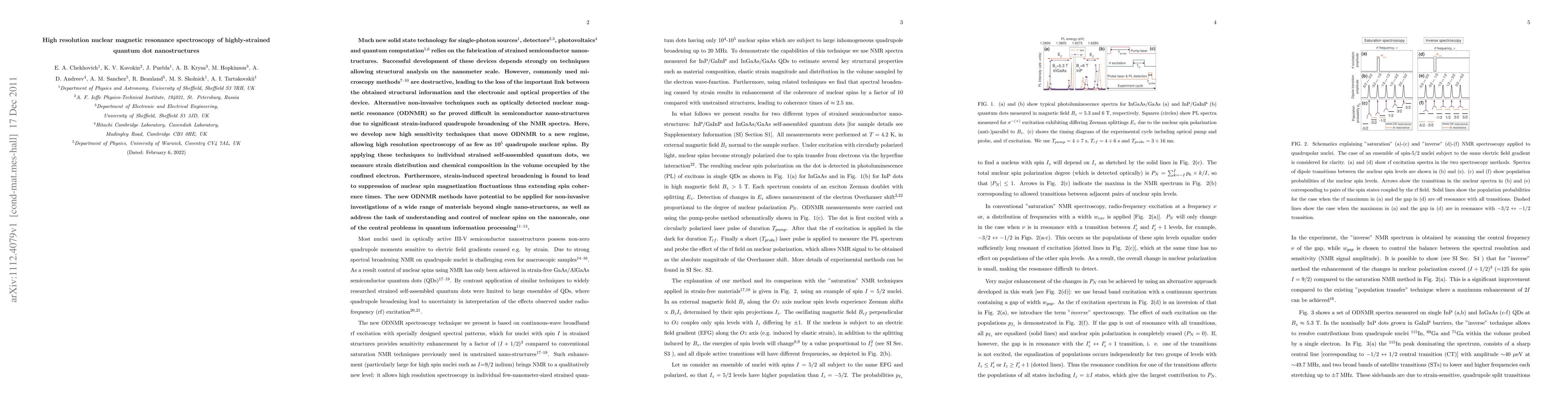 This paper develops high-resolution optically detected nuclear magnetic resonance (ODNMR) techniques for non-invasive analysis of strained semiconductor nanostructures, enabling precise measurement of strain distribution and chemical composition in quantum dots. The new methods extend spin coherence times by suppressing nuclear spin magnetization fluctuations.