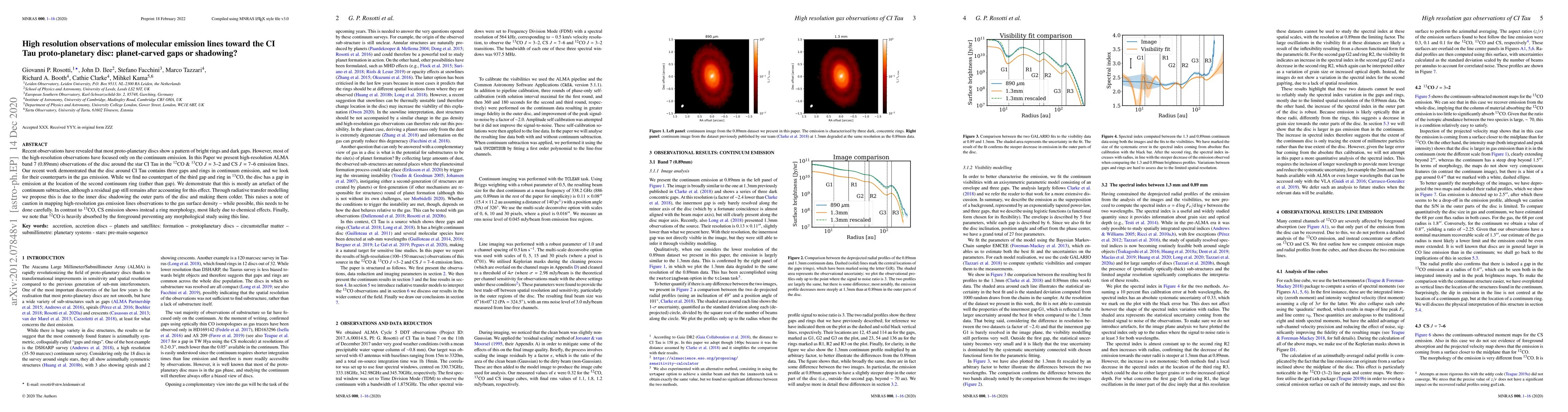 Recent observations have revealed that most proto-planetary discs show a pattern of bright rings and dark gaps. However, most of the high-resolution observations have focused only on the continuum emission. In this Paper we present high-resolution ALMA band 7 (0.89mm) observations of the disc around the star CI Tau in the $^{12}$CO & $^{13}$CO $J=3$-2 and CS $J=7$-6 emission lines. Our recent work demonstrated that the disc around CI Tau contains three gaps and rings in continuum emission, and we look for their counterparts in the gas emission. While we find no counterpart of the third gap and ring in $^{13}$CO, the disc has a gap in emission at the location of the second continuum ring (rather than gap). We demonstrate that this is mostly an artefact of the continuum subtraction, although a residual gap still remains after accounting for this effect. Through radiative transfer modelling we propose this is due to the inner disc shadowing the outer parts of the disc and making them colder. This raises a note of caution in mapping high-resolution gas emission lines observations to the gas surface density - while possible, this needs to be done carefully. In contrast to $^{13}$CO, CS emission shows instead a ring morphology, most likely due to chemical effects. Finally, we note that $^{12}$CO is heavily absorbed by the foreground preventing any morphological study using this line.