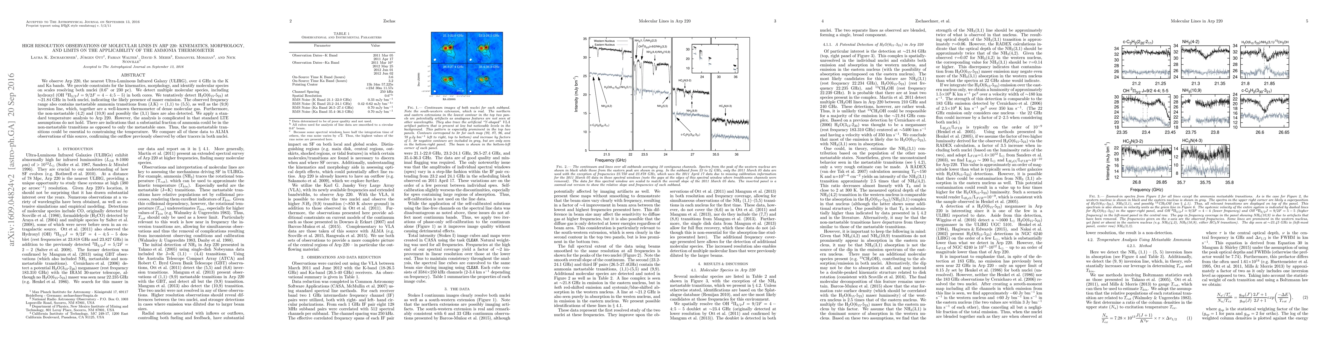 This paper provides high-resolution observations of Arp 220, revealing detailed kinematic, morphological, and molecular species data on scales resolving both nuclei. The study finds that standard ammonia thermometer assumptions do not hold, suggesting a significant fraction of ammonia may be in non-metastable transitions, complicating temperature analysis.