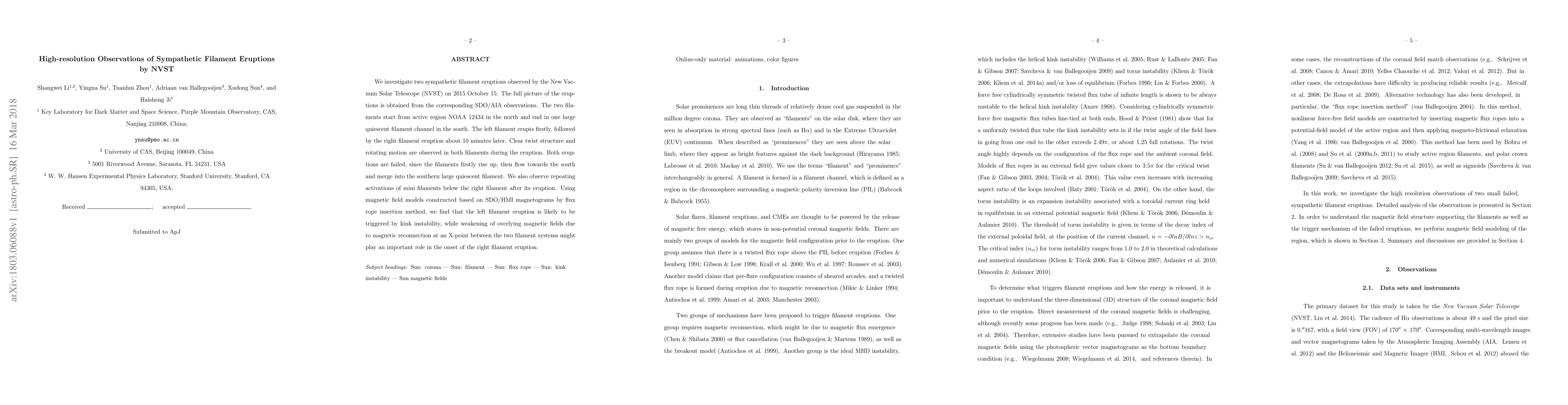 Researchers study two sympathetic filament eruptions on October 15, 2015, using high-resolution observations from the New Vacuum Solar Telescope. They find that one eruption is likely triggered by kink instability, while the other may be driven by magnetic reconnection at an X-point.